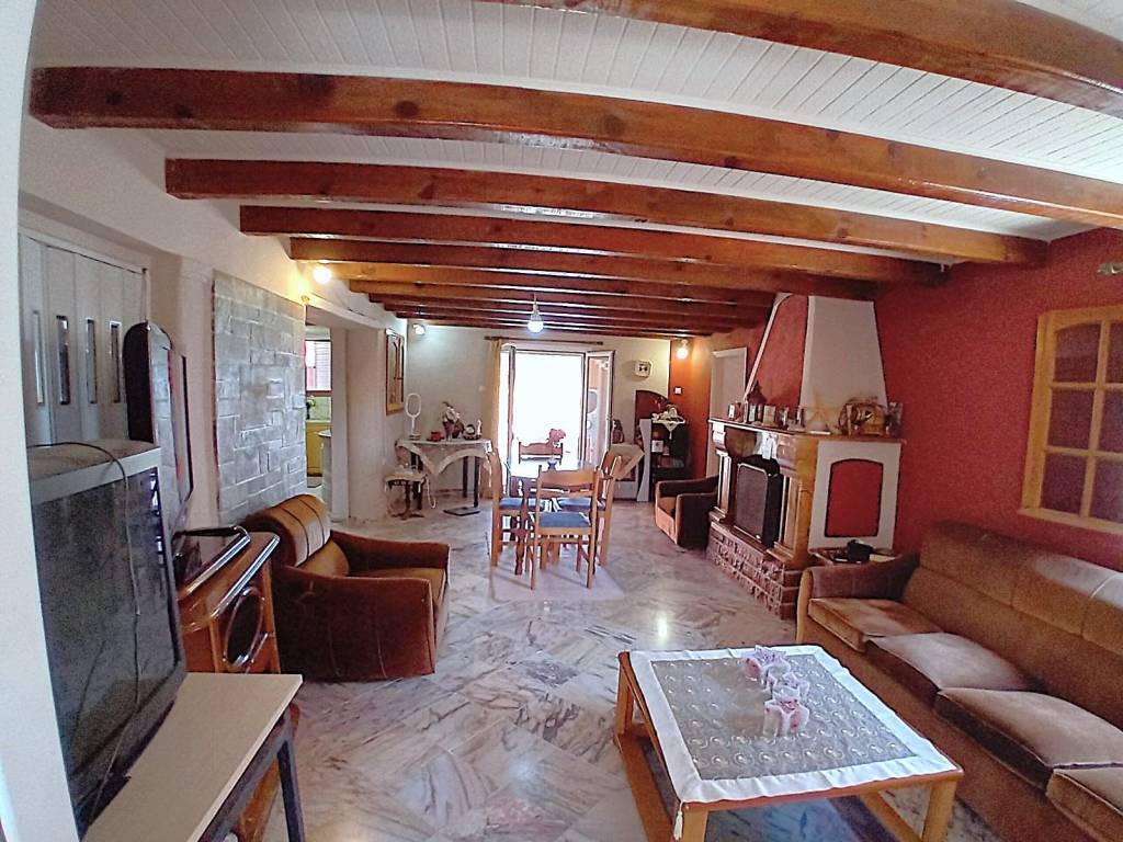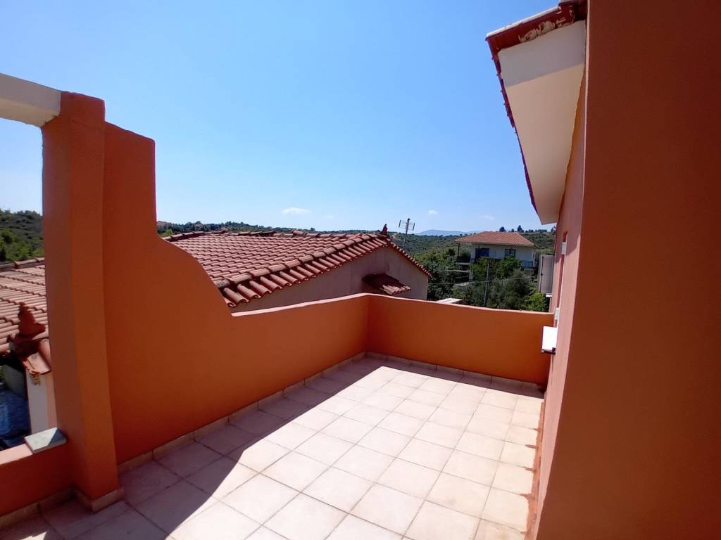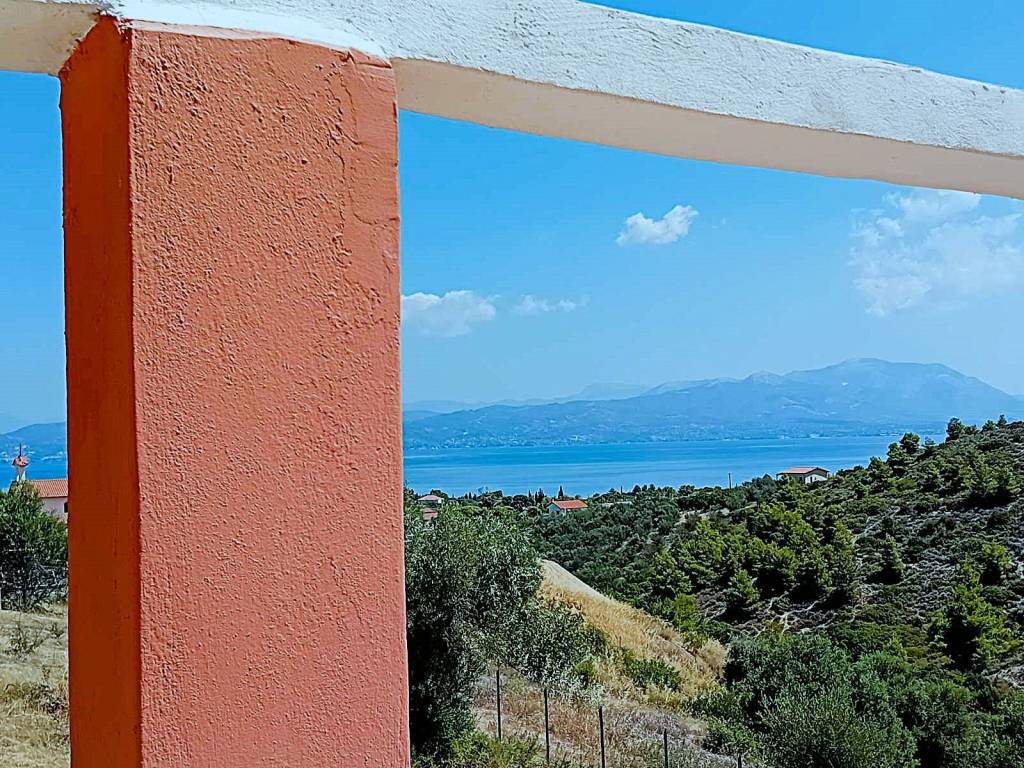 Maison individuelle de 120m² de deux étages avec escalier intérieur, sur un terrain de 265m², entourée de verdure donnant sur la mer. Au rez-de-chaussée, il y a un salon-salle à manger ouvert avec cheminée, cuisine, 1 chambre et salle de bain. Au premier étage, il y a un salon avec cheminée, 2 chambres, une salle de bains, de grandes vérandas avec vue sur la mer et la verdure. La distance de la mer et du centre est de 700 mètres.