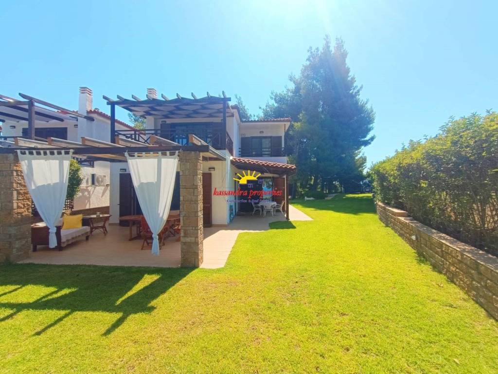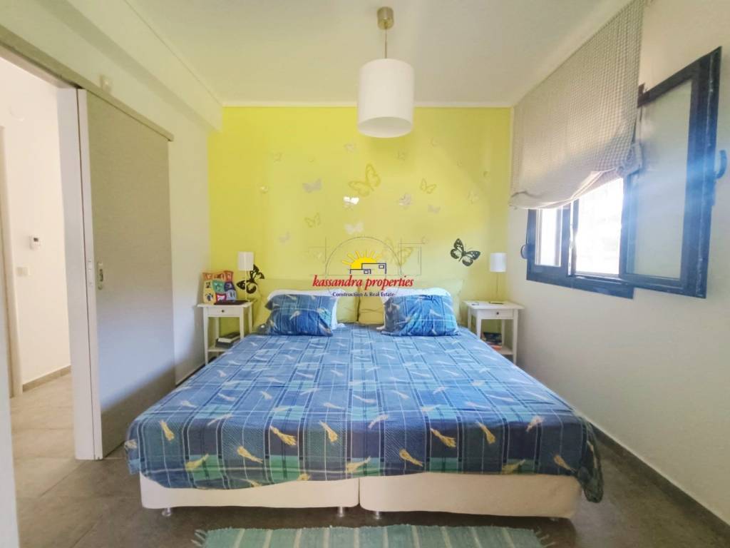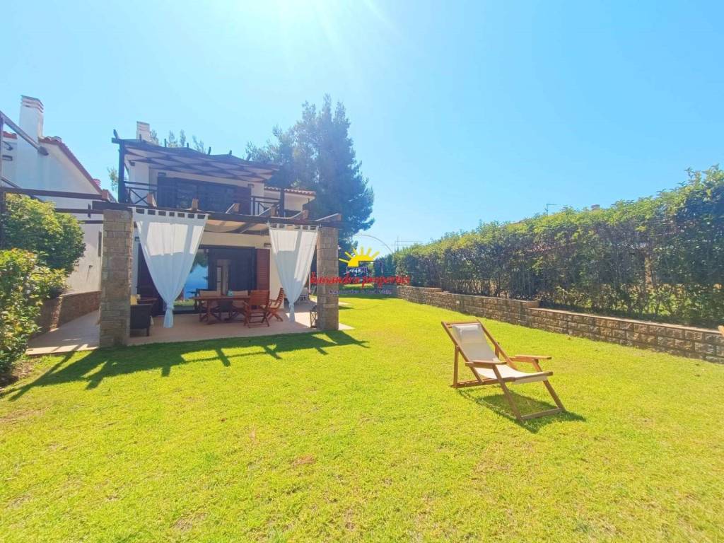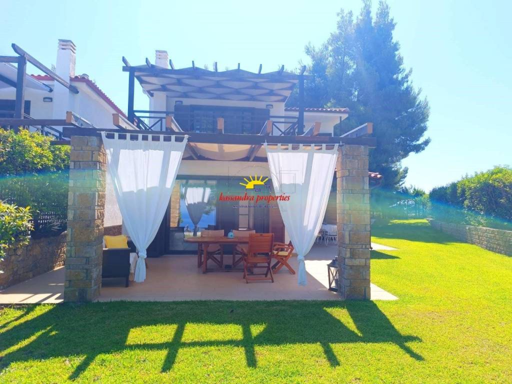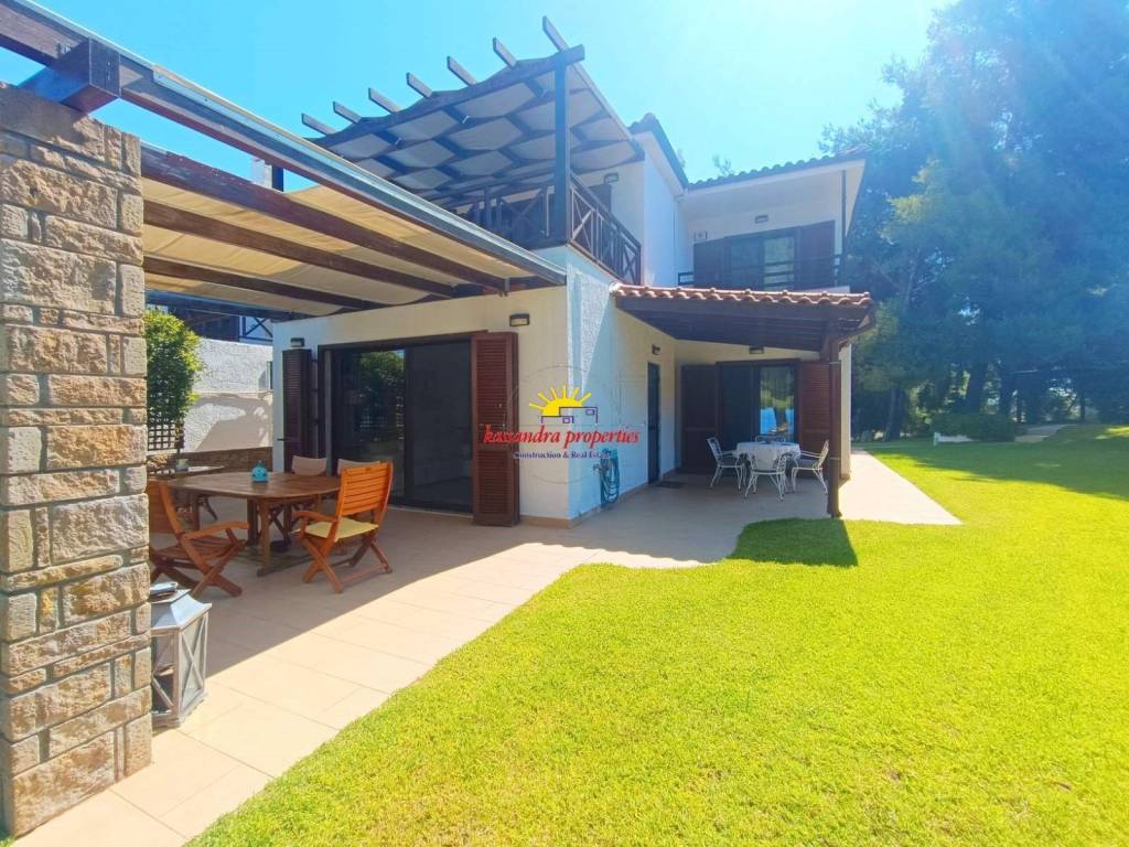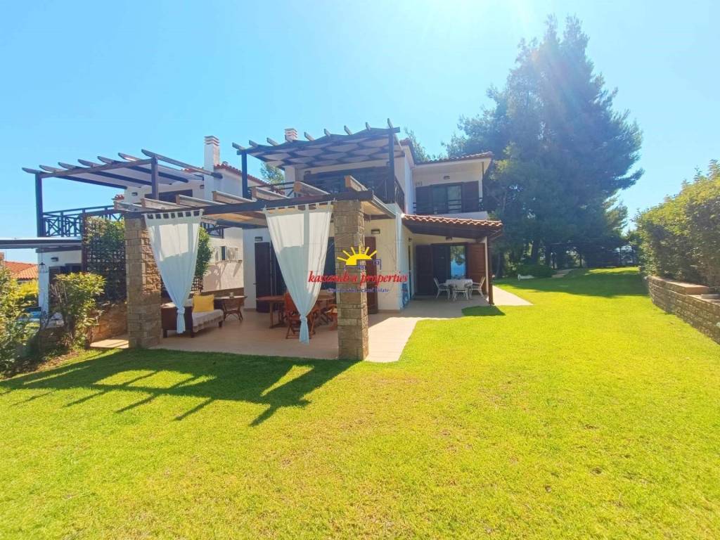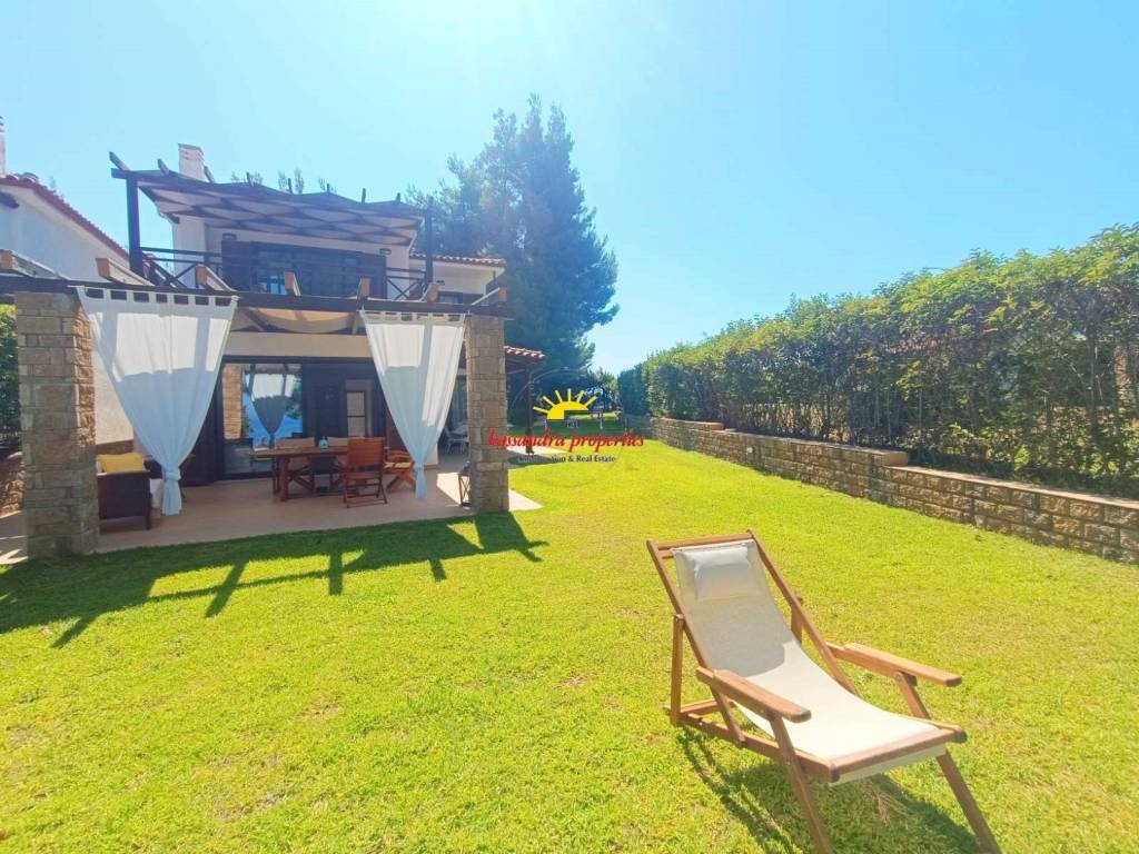 ELANI - FOR SALE: Luxurious maisonette for sale with amazing views, in the heavenly holiday village of Elani, in Kassandra, Halkidiki. This complex is located in a location with unlimited sea views and has easy access to the beautiful beach of Elani, as well as neighboring, equally idyllic beaches. The maisonette is developed on two levels (ground floor, first floor) and has a living room with kitchen, two bathrooms, two bedrooms, a master bedroom with its own bathroom, indoor and outdoor storage. In addition, it has a heating system with a petroleum burner and a parking space. The property has excellent construction and aesthetics, as well as excellent, functional layout of spaces to offer high-standard accommodation. Its wonderful garden with its amazing view, offers moments of relaxation in the beautiful natural landscape. The settlement of Elani is located in a beautiful location with pine forests and crystal clear beaches with white sand and green-blue waters. The beauty and tourist infrastructure of the area is known internationally. It is a famous refuge for special holidays that offer entertainment, peace and tranquility in nature, to high quality standards. The settlement of Elani is guarded and has its own water wells, as well as its own board of directors. It is 90 kilometers from Thessaloniki and 75 kilometers from the airport. It has a variety of tourist accommodations and luxury holiday homes. It is located just 1.5 km from the cosmopolitan village of Siviri and 3.5 km from Kassandria, thus offering direct access to shops, pharmacies, restaurants, cafes, bars and beach bars. The property is an excellent choice for a holiday or permanent residence, as well as for investment purposes. REAL ESTATE AGENCY: Kassandra Properties CONTACT PHONES: +302374023740