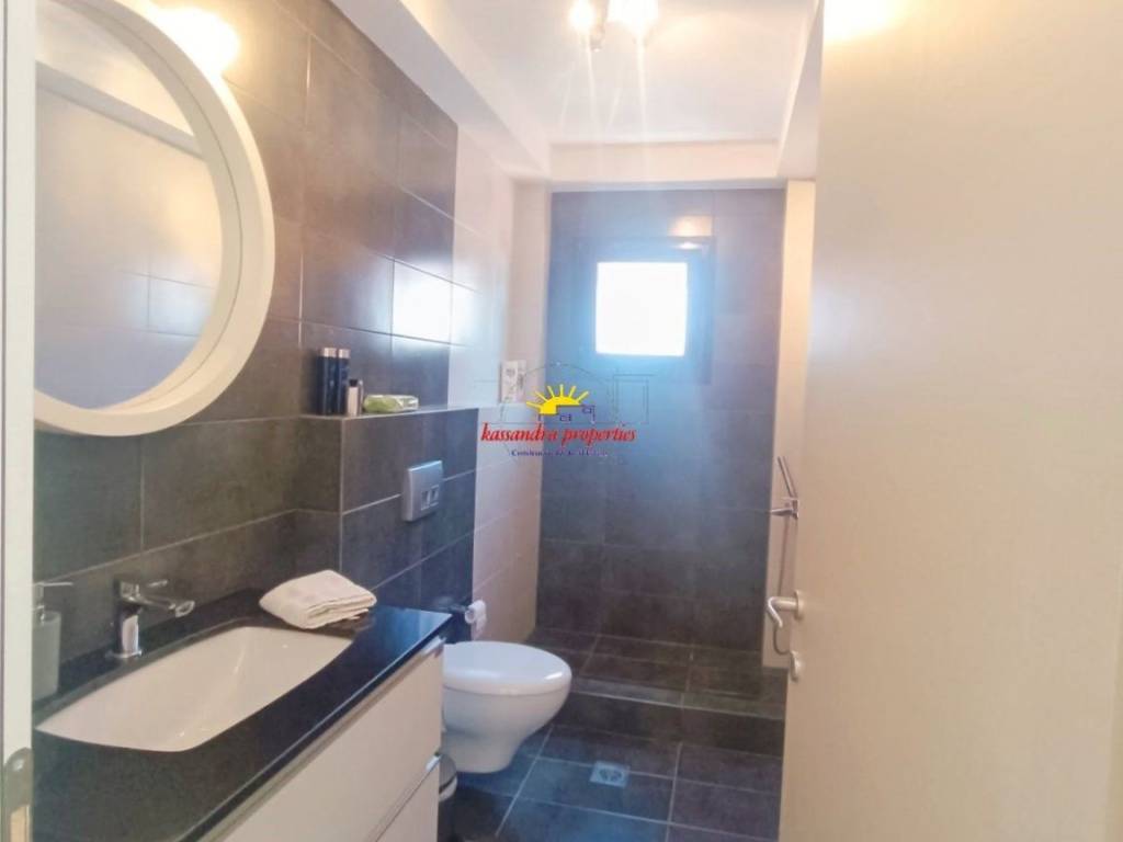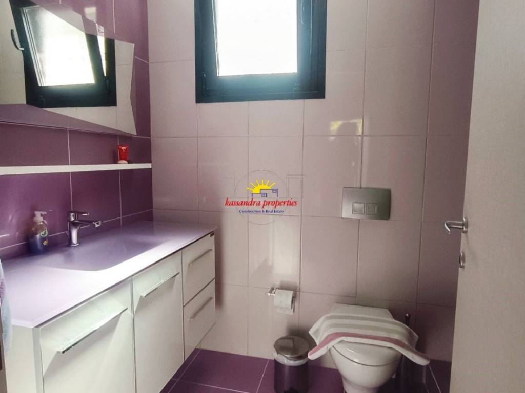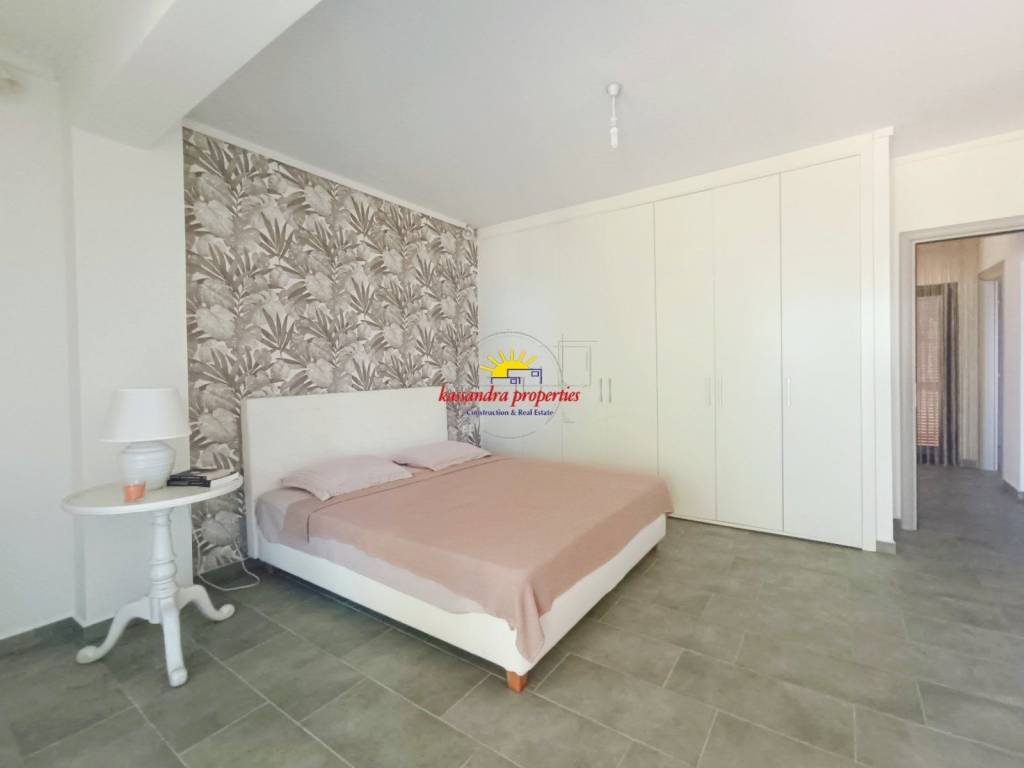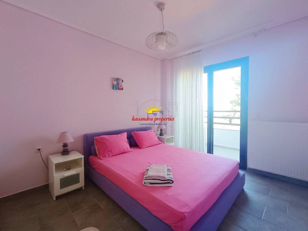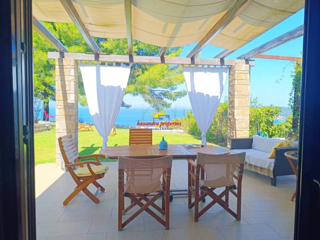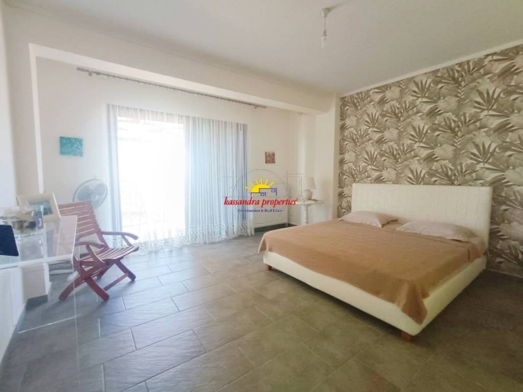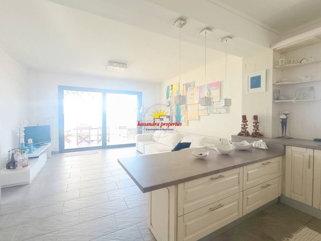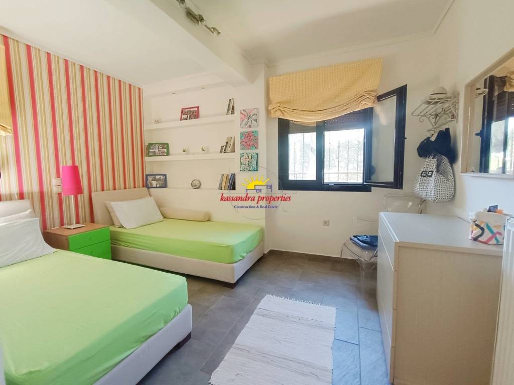 ELANI - FOR SALE: Luxurious maisonette for sale with amazing views, in the heavenly holiday village of Elani, in Kassandra, Halkidiki. This complex is located in a location with unlimited sea views and has easy access to the beautiful beach of Elani, as well as neighboring, equally idyllic beaches. The maisonette is developed on two levels (ground floor, first floor) and has a living room with kitchen, two bathrooms, two bedrooms, a master bedroom with its own bathroom, indoor and outdoor storage. In addition, it has a heating system with a petroleum burner and a parking space. The property has excellent construction and aesthetics, as well as excellent, functional layout of spaces to offer high-standard accommodation. Its wonderful garden with its amazing view, offers moments of relaxation in the beautiful natural landscape. The settlement of Elani is located in a beautiful location with pine forests and crystal clear beaches with white sand and green-blue waters. The beauty and tourist infrastructure of the area is known internationally. It is a famous refuge for special holidays that offer entertainment, peace and tranquility in nature, to high quality standards. The settlement of Elani is guarded and has its own water wells, as well as its own board of directors. It is 90 kilometers from Thessaloniki and 75 kilometers from the airport. It has a variety of tourist accommodations and luxury holiday homes. It is located just 1.5 km from the cosmopolitan village of Siviri and 3.5 km from Kassandria, thus offering direct access to shops, pharmacies, restaurants, cafes, bars and beach bars. The property is an excellent choice for a holiday or permanent residence, as well as for investment purposes. REAL ESTATE AGENCY: Kassandra Properties CONTACT PHONES: +302374023740