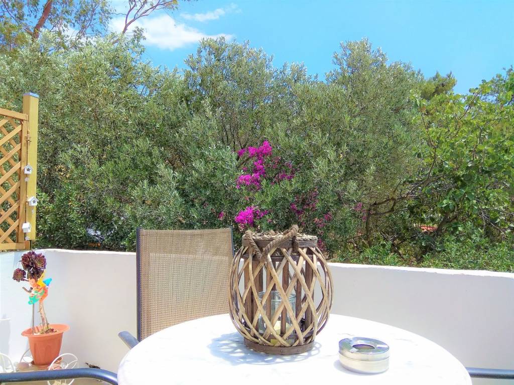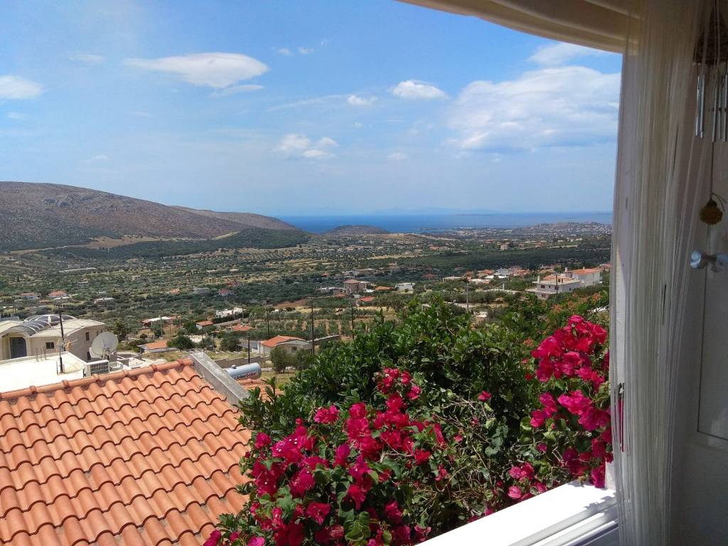 Διαμέρισμα με ΠΑΝΟΡΑΜΙΚΗ ΘΕΑ στον Κόλπο του Σαρωνικού, 47 τμ, 1ος όροφος/ρετιρέ σε διπλοκατοικία, στο Άνω Λαγονήσι (Όλυμπος Καλυβίων), πλήρως επιπλωμένο και εξοπλισμένο, αποτελούμενο από 1 υπνοδωμάτιο-καθιστικό με κουζίνα ανοιχτού τύπου, 1 καθιστικό (με καναπέ κρεβάτι), 1 μπάνιο, χωλ και ανοιχτή βεράντα (15 τ.μ.) με έπιπλα εξωτερικού χώρου. Επίσης, διαθέτει κλιματισμό σε όλα τα δωμάτια, 2 ντουλάπες, ηλιακό θερμοσίφωνα και ανεμπόδιστη θέα στη θάλασσα και το βουνό. (Τιμή χωρίς επίπλωση 530€).