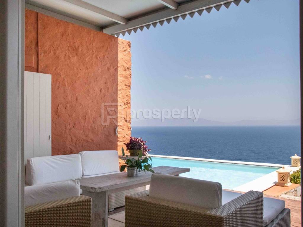 Villa of total 408 sq.m. in Manna , Syros, with a magnificent sea view and an impressive layout. It has a large swimming pool, 5 bedrooms, 5 bathrooms (2 en suite), 3 kitchens, 3 living rooms, barbecue, garden, verandas, laundry area and many parking spaces. Energy-wise, it is served by a fireplace, central heating, solar water heater and air conditioning. All spaces communicate with each other, giving flexibility in internal movement and offering options for meeting or isolation. Of particular aesthetic and utilitarian value is the glass house that constitutes an autonomous internal escape space as well as the train carriage converted into a room that can be used as a playroom or extra bedroom. The unconventional layout and aesthetics of the spaces in combination with the different materials that structure them offer a different luxury experience with a panoramic view of the Aegean. https://marketplace.theprosperty.com/listings/13351 ☎️ 210 6812500
