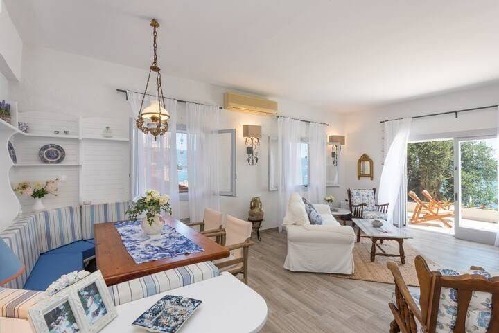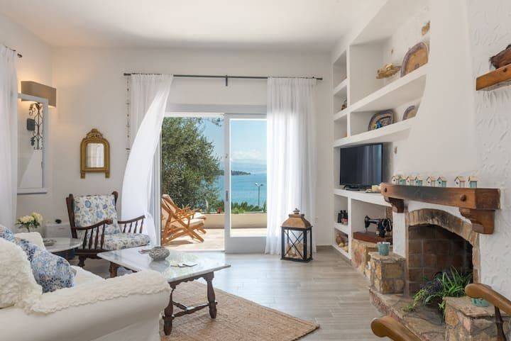 For rent: A beautiful 120 m² country house set within a lush 2,000 m² garden, offering breathtaking, unobstructed sea views in the idyllic Sotiriotissa area of Corfu. This fully furnished and equipped detached home provides all modern comforts. It features a spacious living room with fireplace, a fully fitted kitchen, three bedrooms, two bathrooms, air conditioning, and a generous outdoor dining area perfect for enjoying the view. An ideal choice for those seeking peace, natural beauty, and comfort. Available from 05/10/2025 to 01/06/2026. Monthly rent: €1,300. Renovated, Distance from the sea 50(Distance from the sea) m., Number of parking spaces 2, Painted painted, Veranda, Floors Tile tile, Address, Plot size 2000, Energy class C, Furniture, Zone Residential, View Sea, Property Condition Ready for move, Frames Aluminum, Washing machine, Dishwasher, Zip Code 49132, Type of garage Open parking space, Outdoor Features & Materials Garden, Oven, Bright, Refrigerator
