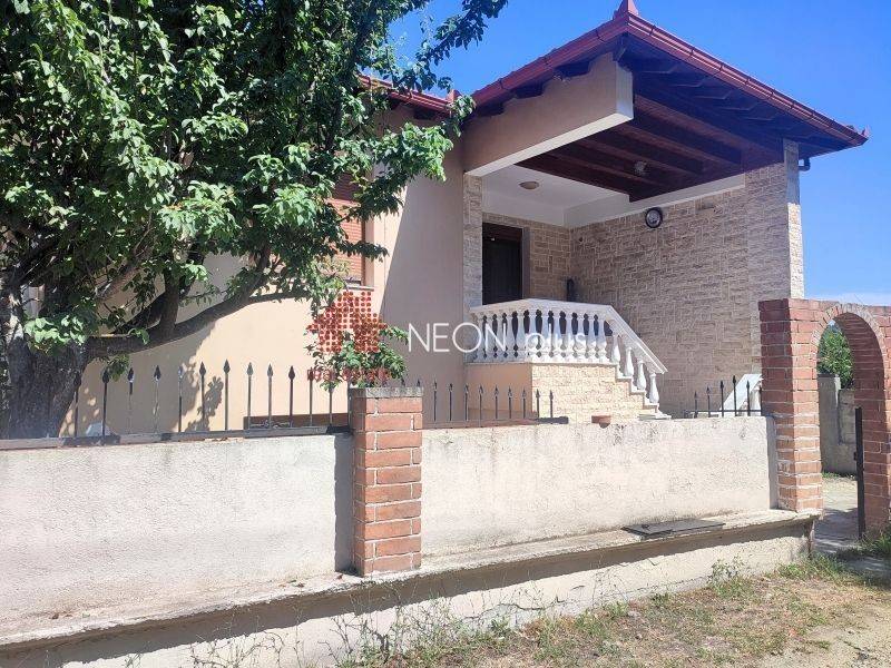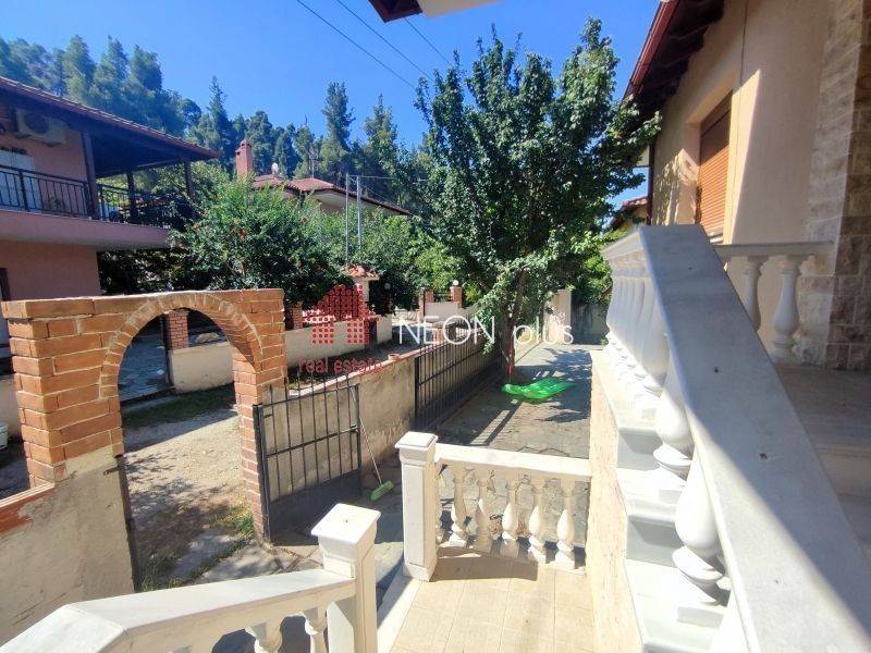 Property code: 1-401 - Kassandra Fourka FOR SALE  a detached house of total 176 sq.m consists of 2 apartments with seperate entrances. Ground floor apartment is 100 sq.m and has 3 bedrooms, living room, kitchen and bathroom. The first floor apartment is 76 sq.m and has 2 bedrooms, of which one bedroom with private gardrobe, living room, kitchen, bathroom and large verantas. There is also a garden with trees and grass. The apartmens are available furnished and withnelectrical appliances included.  - Price: 230.000 €