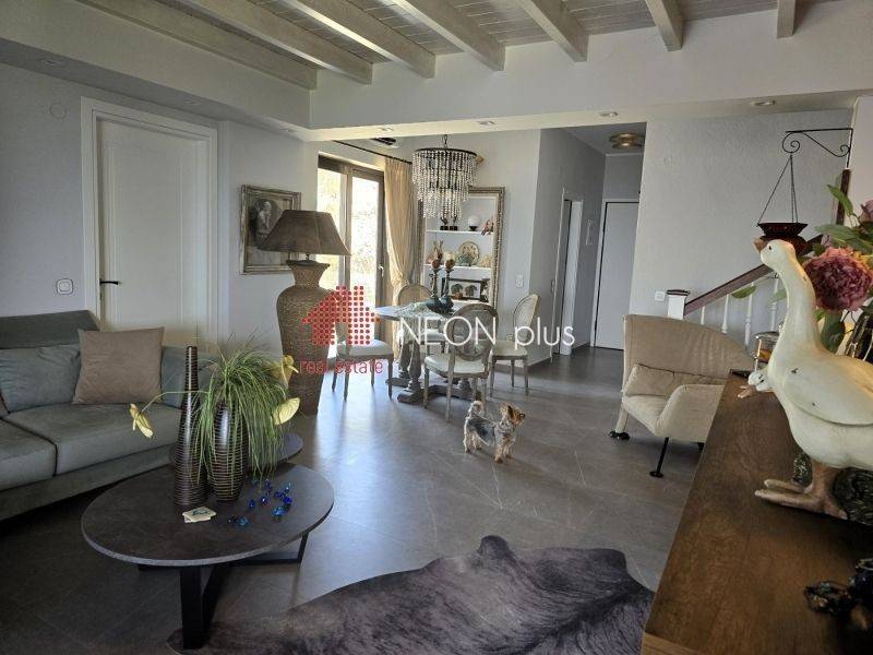 Property code: 1-383 - Kassnadra Possidi MPOULAMATSIA FOR SALE a newbuilt luxury 2 level house of total 140 sq.m. Ground floor has livingroom, kitchen, 2 bedrooms, bathroom and a large veranta with view to the sea. First floos has a master bedroom with private bathroom. All rooms have electrical stories and there is also an indoor storage space under the walnut stairs and an outdoor storage rooms for the needs of the house. The house has also a private swimming pool, an extra water tank of 1000 lt and it is available furbished ( with excellent taste furniture in all areas) and with electrical appliances (bult-in)nincluded. - Price: 490.000 € The above information is based exclusively on information provided to us by the property owner, which are subject to any typographical errors or price change by him. PURSUANT TO LAW 4072/2012, IN ORDER TO VIEW THE PROPERTY, IT IS NECESSARY TO PROVIDE YOUR ID AND TAX NUMBER WHICH MUST BE INDICATED IN THE LISTING AGREEMENT. The indication of the map shows the general area which it is located. For any clarification, we are at your disposal. NEON plus Real Estate STAVROS SOULIMENAS