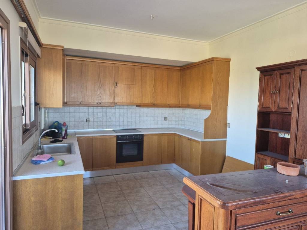A 190 sqm apartment on the first floor of a modern two-story building in Daratsos, featuring four bedrooms, open-plan living room with kitchen, two bathrooms, and storage room. The property includes autonomous oil heating, energy fireplace, aluminum frames with double glazing, security door, and solar water heater. Fully equipped with electrical appliances and furnished, with tiled floors throughout and mosquito screens on all windows. The apartment offers a large covered terrace with panoramic sea and city views, private covered parking space, and access to a 700 sqm garden area. Cross-ventilation ensures excellent natural lighting throughout the day. The property features modern amenities including built-in wardrobes, updated electrical installations, and high-quality finishes suitable for year-round living. Located within walking distance of schools, pharmacies, supermarkets, and the beach. The area combines traditional Greek village charm with modern infrastructure, offering easy access to Chania city center while maintaining a peaceful residential atmosphere. Ideal for families seeking a blend of comfort, convenience, and scenic Mediterranean living.