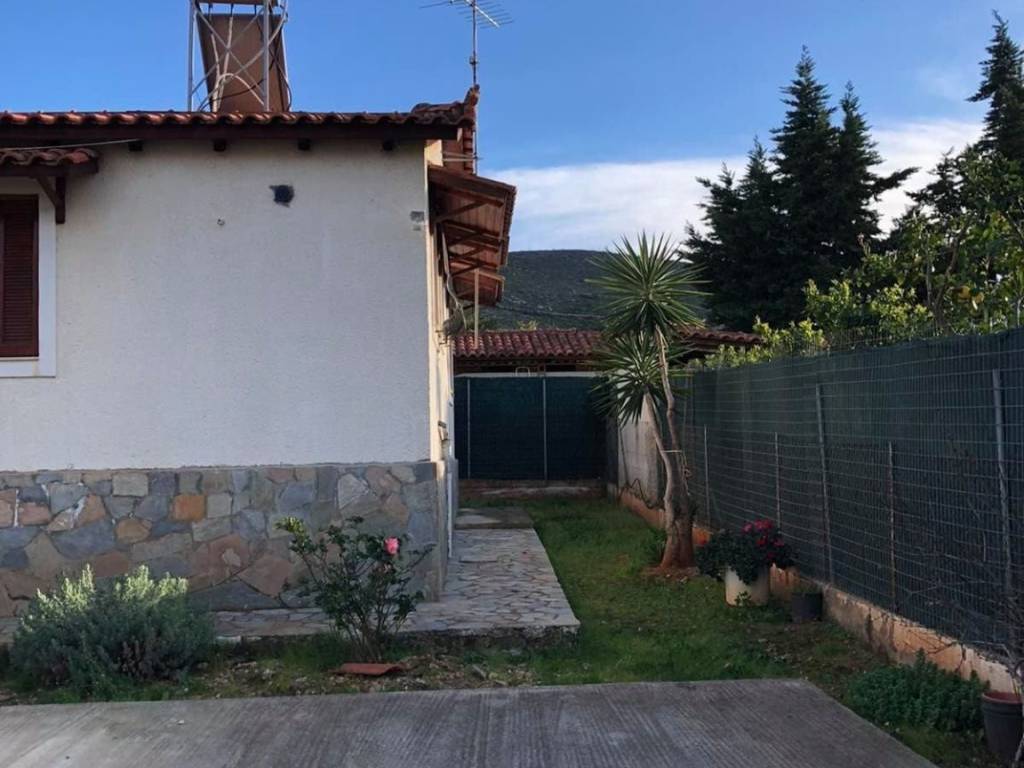 Detached house in Agioi Apostoloi, Kalamos, Attica, consisting of two residences of 66 sq.m. and 40 sq.m., situated on a large plot. The property includes a garage, fireplace, autonomous heating, solar water heater, as well as fruit and olive trees. Built in 2000. Available from November.