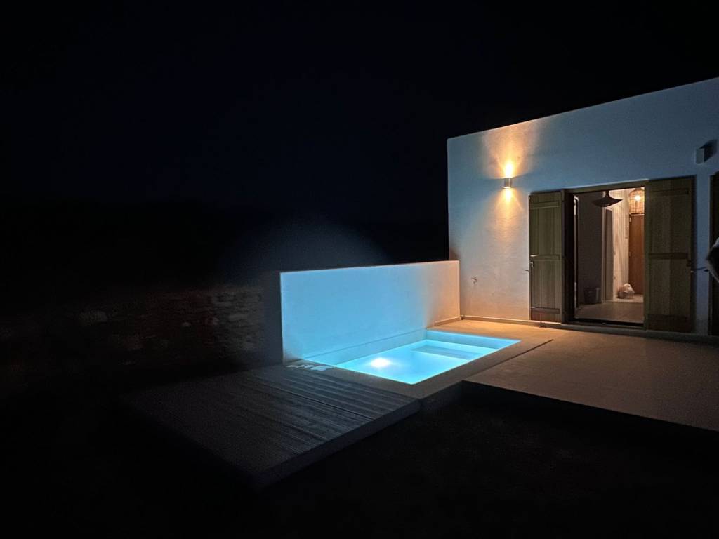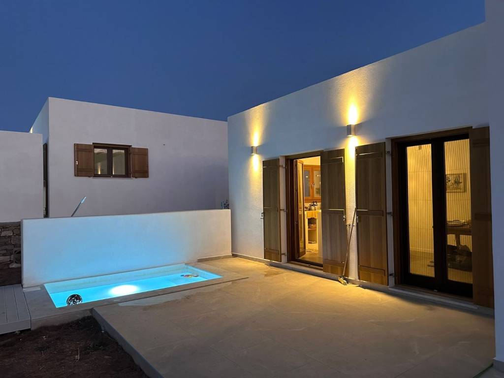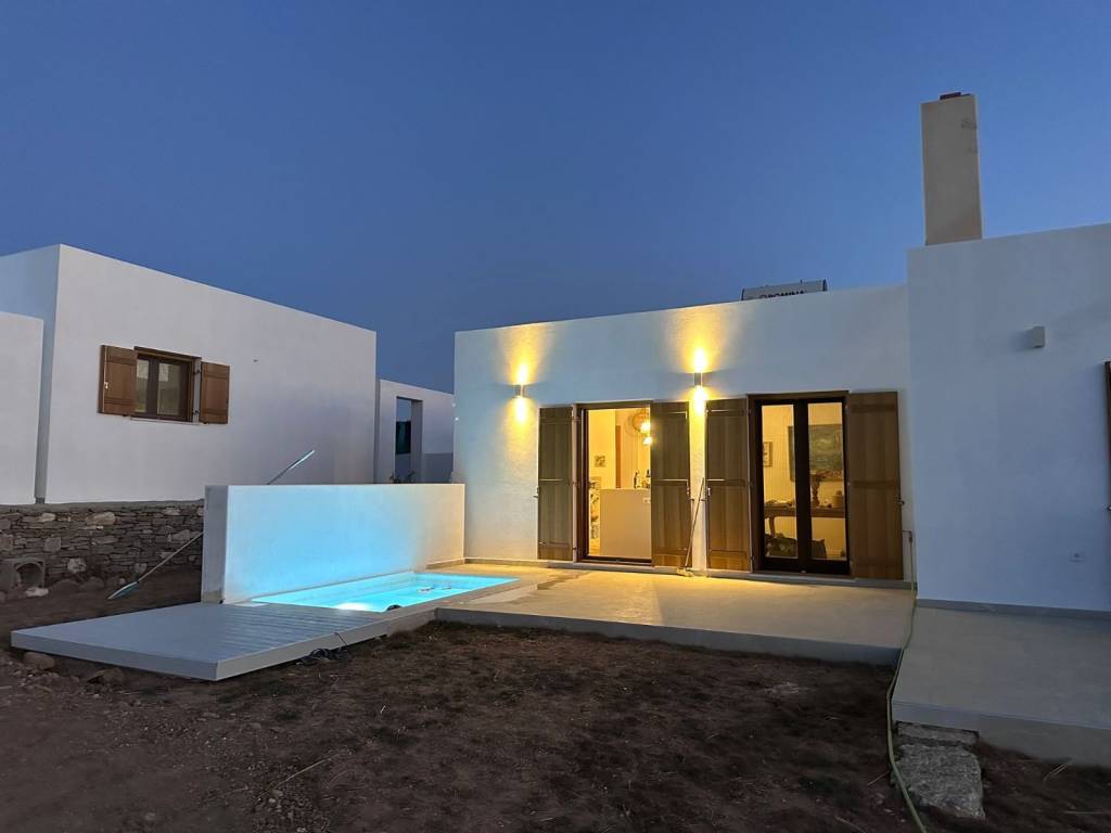 Discover this stunning property on the beautiful island of Paros, offering 8,000 sqm of land with breathtaking views across the Aegean Sea and Naxos Island. Perfectly positioned just a 10-minute walk from the famous New Golden Beach and a 5-minute drive to the picturesque village of Piso Livadi, this estate combines tranquility with easy access to the best of Paros. The property features 240 sqm of living space divided into four independent houses: • Two 1-bedroom cottages – perfect for romantic getaways or cozy retreats • One 2-bedroom house – ideal for small families or friends • One 3-bedroom house – offering generous space for larger groups or owners Each unit comes with its own private splash pool, creating the perfect setting for relaxation while enjoying the panoramic sea views. The estate also boasts a young olive grove, adding Mediterranean charm and potential for your own olive oil harvest in the future.
