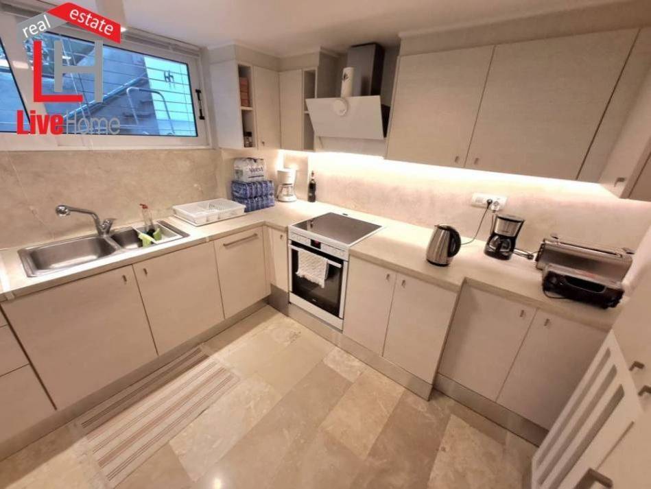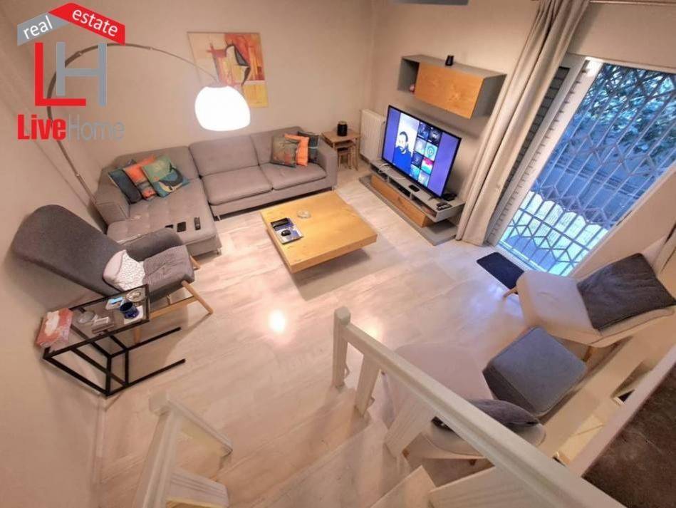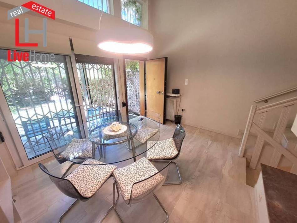 Kifissia, Center: Luxuriously renovated corner maisonette of 92 sq m. for sale, with its own garden of approximately 85 sq m. It is front-facing on the ground floor of 4 levels with individual natural gas heating. It consists of 2 bedrooms, 1 kitchen, 1 living room, bathroom with loft and 1 WC. It is fully furnished and equipped (it operated with great success on short-term rental platforms), with electrical appliances (bed, wardrobe, coffee table, kitchen table, sofa, washing machine, dryer, dishwasher, built-in oven, refrigerator, hall furniture, etc.), built in 1984, painted and has aluminum frames with double glazing, screens and security railings, security door, 3 air conditioners, beautiful marble & wood floors, awnings. Located in a functional location near the market and 1.3 km from ISAP KIFISSIA. REAL ESTATE AGENCY LIVEHOME REAL ESTATE - AGAPIDIS E.E. ATHENS - CORINTHIANS. Price 350,000€ | Property Code: #GPA 21018