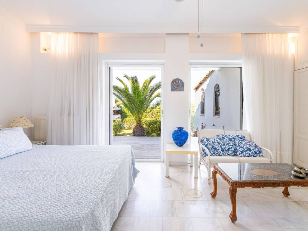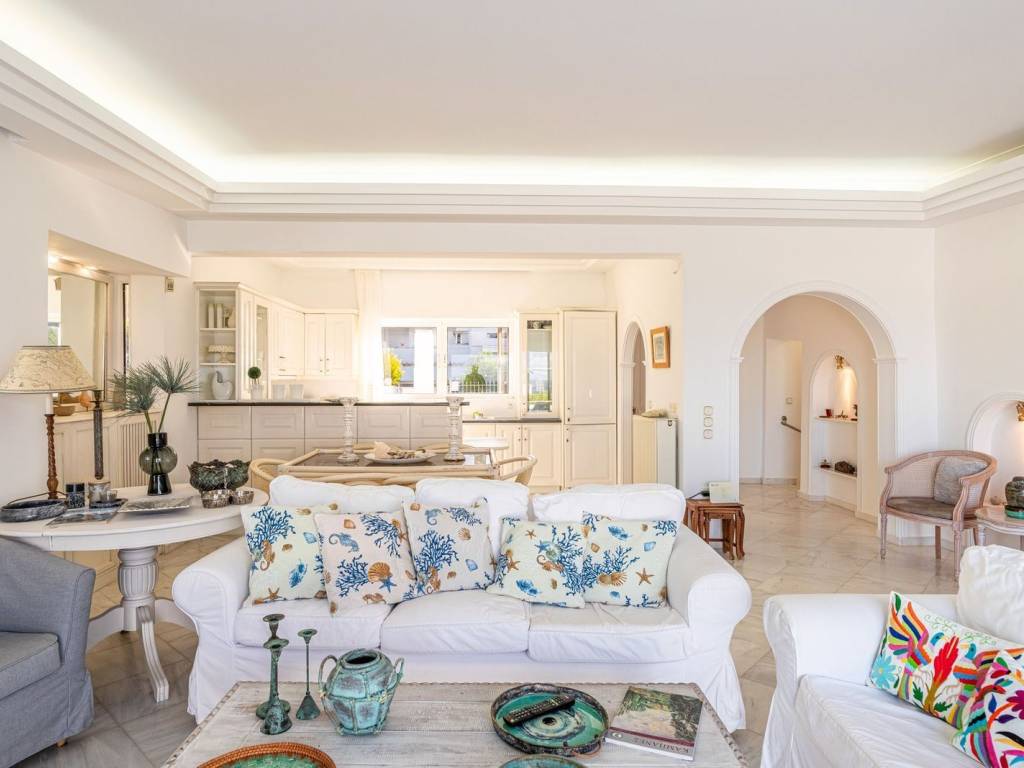 This is a luxurious detached house located in a quiet neighborhood in Palaia Fokaia. It consists of 210 sq.m. and was built in 1992 on a 700 sq.m. plot. The house is furnished and consists of 3 levels: first floor, ground floor, and basement. Elegant design in white tones with blue decorative details makes you feel like you are in a Greek island. A short walk away, you can enjoy the beach. From the main entrance, you enter the first floor where there is a bright and spacious living room and kitchen in an open space. From the living room's balcony door, you are in an impressive balconi with an incredible view of the Saronic Sea. On the ground floor, there are 3 bedrooms, one of which is master bedroom, and 2 bathrooms. From the ground floor, you have access to the garden, where you can enjoy relaxing moments. The basement consists of a large open space that can be used as a second living room or playroom or even to accommodate your guests. On the same level, there is a kitchen and a bathroom. In the outdoor area, which is beautifully designed on levels with grass and plants, there is a built-in BBQ. The detached house has one outdoor parking space. This house offers all the amenities to meet the needs of a family. Palea Fokea is an Athens Riviera destination just 45km to the south of Athens, and 20km from Cape Sounio. It is home to summer homes, luxury villas and sandy beaches. Unique features: Peaceful and safe residential area, 20-minute drive to international schools, very close to supermarkets and a vibrant commercial centre. Wide choice of restaurants, bars, cafes and beach clubs. Close proximity to scuba-diving and wind-surfing spots. Accessibility: Palaia Fokea is just a 20-minute drive to the port of Lavrion, with easy access to the Cycladic islands, 40 minutes away from the international airport and to Glyfada’s shopping district.