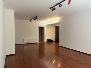 1st floor apartment on a facade (114m2), renovated in 2025, bright, in a well-kept, quiet apartment building of a few apartments, two per floor, with the main areas of the apartment on the pedestrian street of Arnis Street, with tree-lined front gardens, which can meet the needs of a family of four or even a professional home. The apartment is only two minutes from the Megaro Mousikis metro station and five minutes from the Hilton Hotel. It has a large living-dining room (Iroko wooden floors), a bright, furnished kitchen with built-in Siemens electrical appliances, and a large front veranda (12m2) with extra storage. The two spacious bedrooms with built-in wardrobes, also covered with wooden floors (Iroko) also have access to a balcony overlooking the uncovered space. It has a small auxiliary work area inside the apartment. The two bathrooms, a spacious bathroom with bathtub and shower and a small guest bathroom are particularly well-furnished, with the ability to serve people with special needs. The apartment has independent autonomous gas heating, as well as air conditioning in all areas. It is classified in energy category C, while, among other things, it has modern double glazing and screens. The apartment building, as well as the apartment, have security doors.