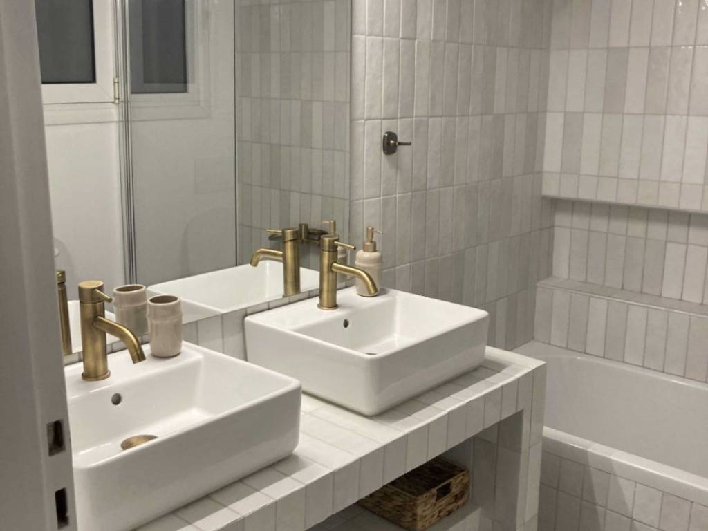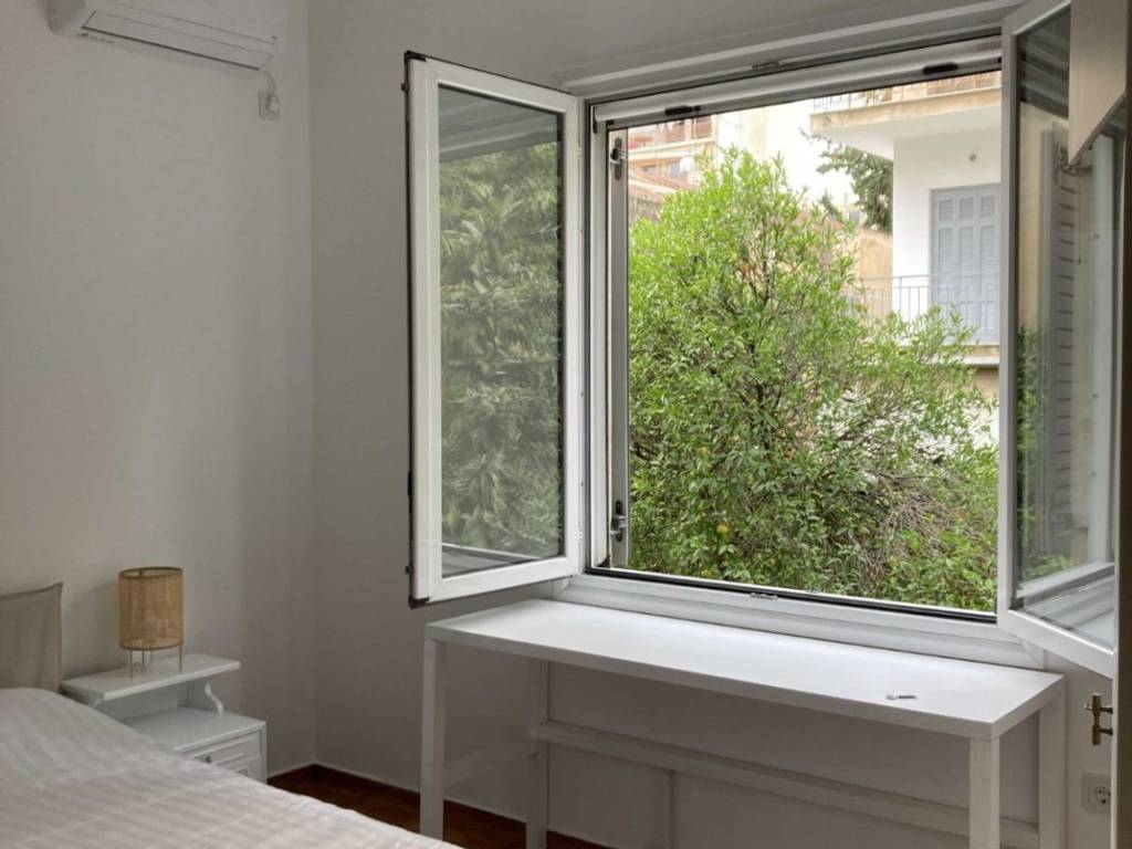 I am renting out this 82 m² apartment, renovated two years ago. It features two bedrooms overlooking a garden full of fruit trees, a living room with a large corner sofa and dining area, and an open-plan kitchen with a marble countertop, oven, and all necessary cooking equipment. The bathroom is spacious and includes a bathtub. The apartment also offers a large balcony with both a dining and a lounge area, where you can enjoy your meals with a view of the orange, pomegranate, and lemon trees. It is centrally located, just 5 minutes from Victoria metro station and 9 minutes on foot from the train station with direct access to the airport. The rent includes all utilities: water, electricity, and internet. Spacious, quiet, and fully equipped, the apartment is available from October 31.