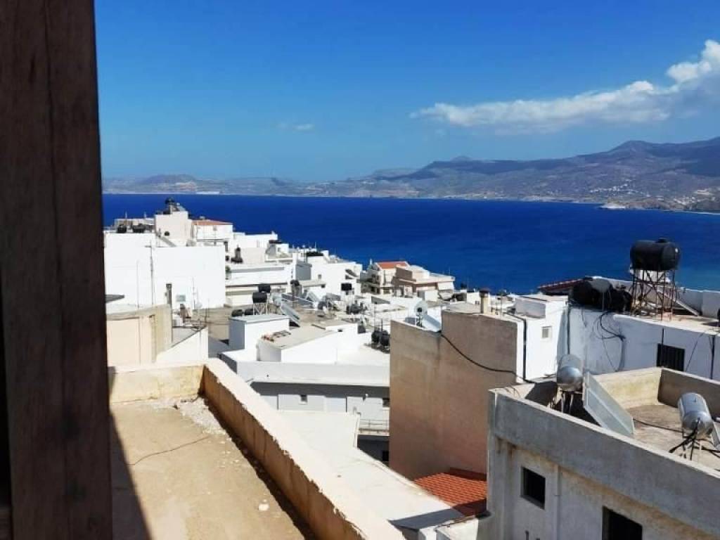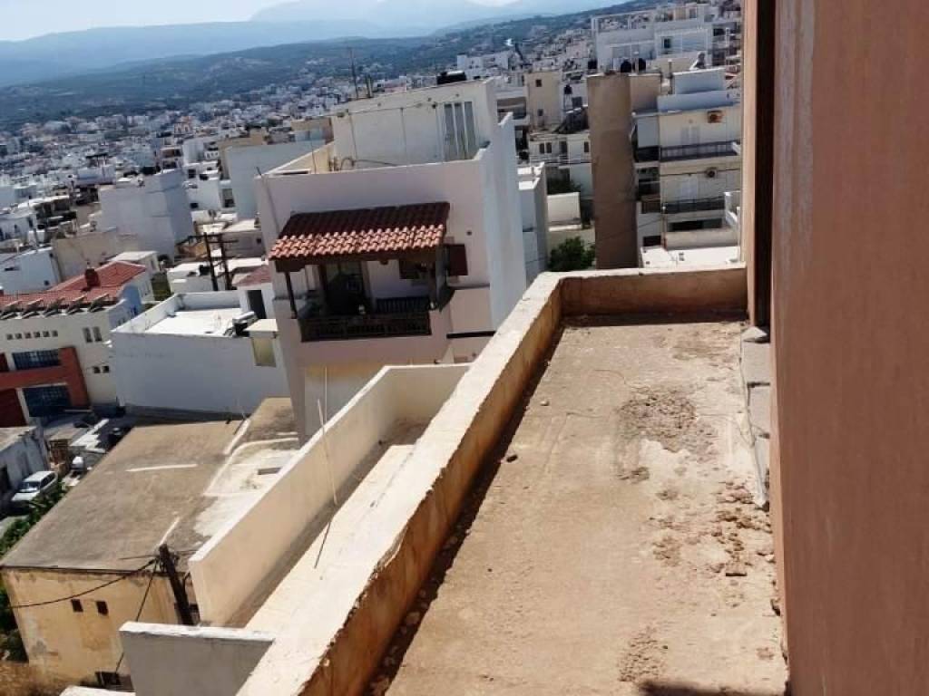 Sitia, East Crete: Half-finished apartment on the 3rd floor just 350meters from the sea. The apartment is 90m2 consisting of an open plan kitchen – living area, a corridor, two bedrooms and a bathroom. It is in need of finishing. The property has a front and rear balcony enjoying sea views. It has good access and has no lift. Lastly, it enjoys views to the town, sea and mountains.