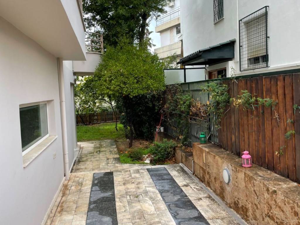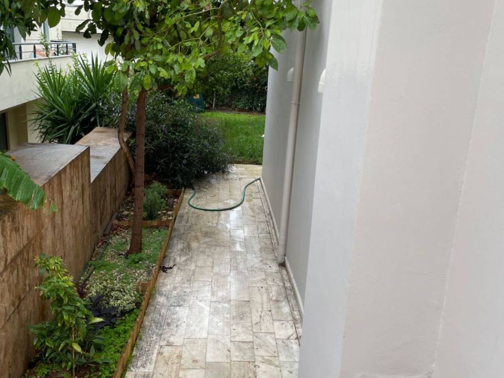 If you dream of living in the city center without sacrificing the luxury of nature and your own personal green oasis, this apartment is exactly what you are looking for. Rare and well-designed, this 109 m² ground floor property combines practicality, comfort, and privacy in a way that few properties can offer. The apartment is located in an elegant corner building with limited residences—only four apartments—guaranteeing a quiet and high-quality everyday life. The feeling of privacy and intimacy is immediately apparent from the moment you enter the space. The strongest point of the property is undoubtedly the exclusive use of the approximately 25 sq.m. garden with deciduous trees, as well as the exclusive use of the surrounding area and parking space that accompanies the apartment. A real gem that is rarely found in central locations. Here you can enjoy your breakfast under the shade of the trees, host friends for afternoon coffee or BBQs, let your children play safely, or relax with your pet in the natural environment of your home. The feeling of being in the city but at the same time secluded in a private, green space creates a unique living experience. Interior The apartment is spacious, with a unique layout and modern amenities: A bright living room with a fireplace, ideal for relaxing on cold winter days. The space is suitable for romantic or family moments. Two bedrooms offering a different experience to meet your specific personal needs. Fully equipped kitchen with refrigerator, oven, and ceramic hob, ready to support everything from simple meals to creative culinary experiences. Contemporary glass dining table with four chairs, combining elegance and practicality. Glass desk ideal for working from home or studying, meeting the modern needs of everyday life. A bathroom that completes the space with functionality and elegance. Amenities & Additional Features The property comes with amenities that make a difference: Exclusive parking space to forget the stress of the city. Outdoor storage, suitable for your washing machine and dryer, as well as for storing personal items. Independent heating that ensures economy and complete temperature control. Wired alarm system for your safety and peace of mind. Pets are welcome, so that the whole family can be together. Lifestyle Living in this apartment, you don't just get a home. You get a lifestyle. On the one hand, you have everything the city has to offer within walking distance: shops, restaurants, transportation, services. On the other hand, the opportunity to return home and enjoy a private garden full of trees is a rare privilege. The tranquility, sense of freedom, and daily contact with nature enhance the quality of life to levels that few places can offer. Ideal for... Young families who want comfort, safety, and space for their children. Couples looking for a special, cozy place to create memories. Professionals who need a functional home with extra workspace. Pet lovers who want to offer their pets a free and safe space. ✨ This residence is truly a rare find. The combination of its central location, comfortable spaces, and—most importantly—private garden makes it a standout choice on the market.