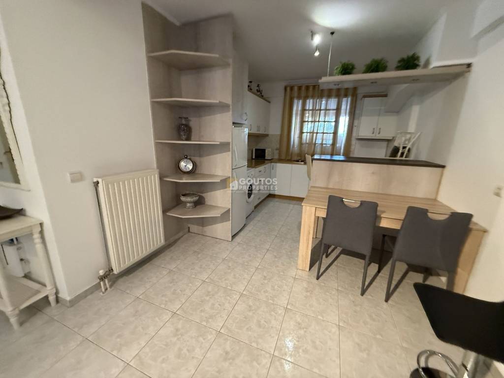 Apartment For rent, floor: Ground floor, in Glyfada - Aixoni. The Apartment is 61 sq.m. and it is located on a plot of 400 sq.m.. It consists of: 1 bedrooms, 1 bathrooms, 1 kitchens, 1 living rooms and it also has 1 parkings (1 Open). The property was built in 1983 and it was renovated in 2022. Its heating is Autonomous with Electricity, Air conditioning are also available, it has Alluminum frames with Double glazed windows, the energy certificate is: B and its floors are Tiles. The property's status is: Renovated, it is close to Transportation, School, Super Market, Cafe/Restaurants, Local market and it has EastWest orientation. The Apartment is Whole floor, Painted, Furnished, With Facade, Bright, Airy, Sunny, Airy, Detached and it also has the following unique features and advantages: Electric Appliances, Security alarm, Three phase current, Quiet neighborhood, Porch, Electric shutters. Price: €800. Goutos Properties, contact phone: 2109715711, email: sales@goutos.gr, website: www.goutos.gr
