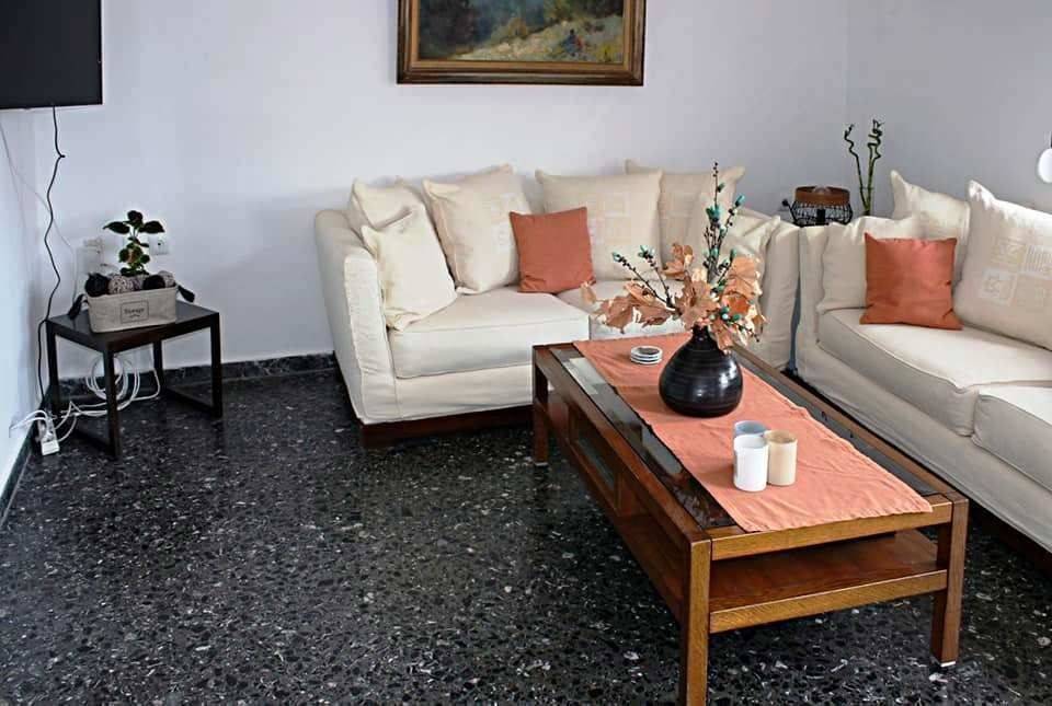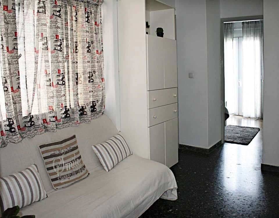 Ierapetra, South East Crete: Third floor penthouse apartment 20meters from the sea. The apartment is 80m2 located in the centre of Ierapetra town and just 20meters from the pedestrian street. It consists of two bedrooms, a big living room, a big hall area and a bathroom. There is also a 40m2 approximately balcony with French doors.