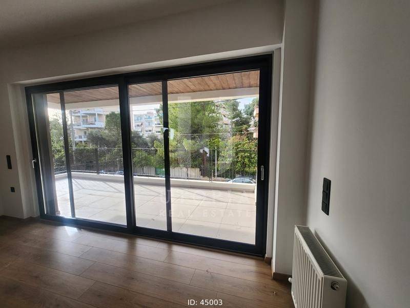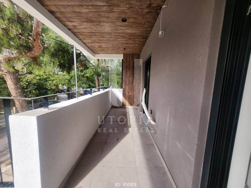 Iraklio (Attica - Northern Suburbs) - Apartment 105sqm bedrooms 3, master bedroom, levels 1, 1st, newly built, year built 2024, energy class A+, living room, kitchen, 2 bathrooms, wc, heating type: autonomous (natural gas), air condition, parking ground floor, quiet, dual aspect apartment, luminous, frontage, storage space, solar heater, external thermal insulation, fireplace, balconies, elevator, thermal shut-off frames, double glazed windows, door screen, wood & tile floors, three phase electricity, secure door, alarm, video doorbell, residential zone.