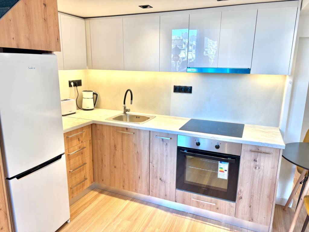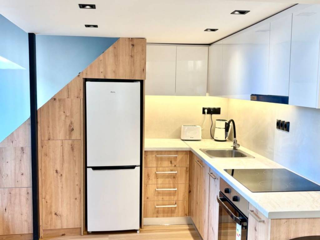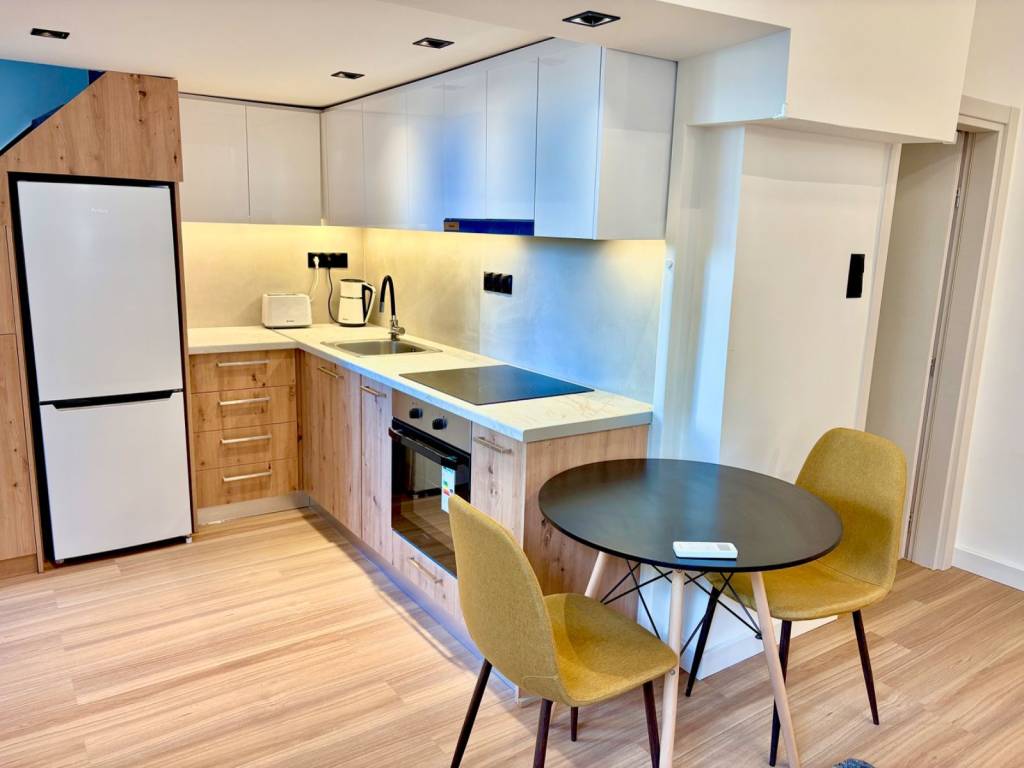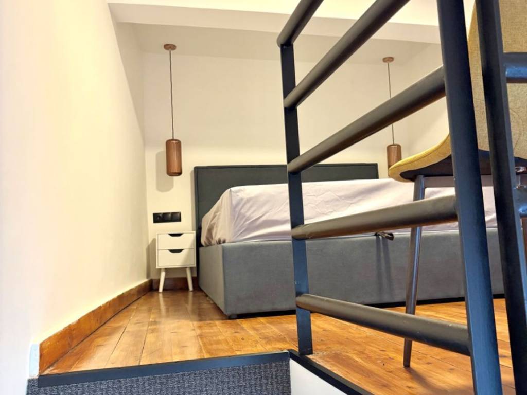 Ultra-luxury renovation, fully equipped and furnished 2-level apartment. Brand new electrical installations, wiring, lighting fixtures, LED strips, plumbing, tiles, bathroom, LED-lit mirror, internal staircase. Includes brand new appliances: washer-dryer combo, total no-frost refrigerator, stove, small kitchen appliances, smart TV, 2 A/C units. The upper level features a double bed with storage underneath, a new orthopedic mattress, bedside tables and a wardrobe with lighting. The lower level has an Italian sofa with an extendable footrest, a coffee table with chairs, a rug and furniture. Security door with aluminum cladding, water heater. Private entrance with a small front balcony, no shared expenses (HOA fees). It is a small apartment ideal for one person or a couple — a completely new loft; the upper level with the bed and wardrobe is 10 sq.m. with wooden flooring and the lower level is 32 sq.m. Total of 42 sq.m. across both levels. With a separate space for the washing machine and a small storage area within the bathroom. The property is just 900 meters from the Metro and right next to Vokos Park. It is 50 meters from Petrou Ralli Avenue. Right outside the building there is a bus stop, a supermarket and a market.
