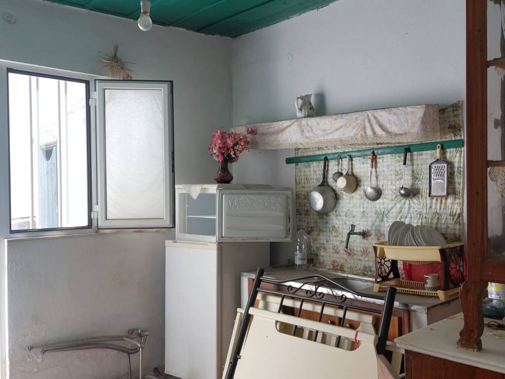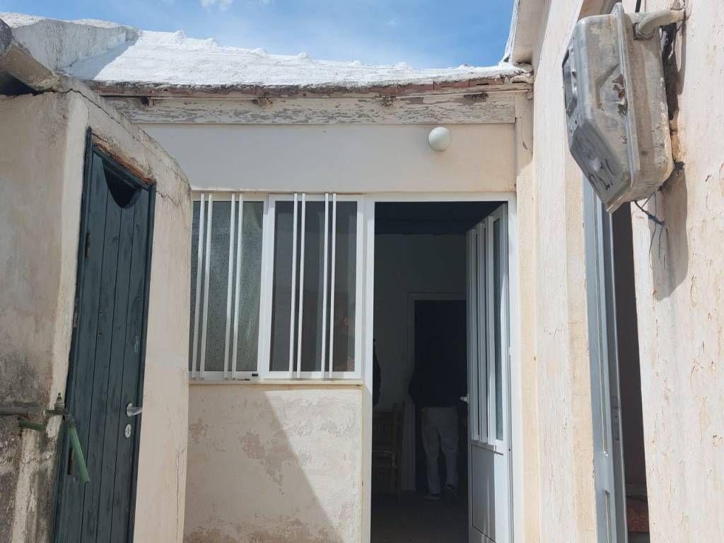 Myrsini, Sitia, East Crete: Village house on two levels 4km from the sea. The ground floor upper level is 45m2 consisting of as kitchen, a living room and a separate entrance to a bedroom with nice balcony and sea views. There is also a courtyard of about 10m2 with an outdoor toilet. The ground floor downstairs is about 15m2 with a separate entrance to a room. At the back of the property is an entrance to a store room. The property is in need of modernization with good access. All services are connected. Lastly, the property enjoys views to the village and from the balcony to the sea.