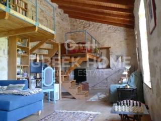 Gorgolaini, Pyrgou - Detached House 145sqm plot 145sqm, unfurnished, bedroom, levels 1, ground floor, excellent condition, year built 1910, renovation year 2010, energy class B, living room, hall, kitchen, bathroom, 2 wc, heating type: central (wood), parking, quiet, dual aspect apartment, luminous, unobstructed view, storage space, balconies, large balconies, loft storage, garden, wooden frames, double glazed windows, door screen, ceramic tiles floors, without common charges, internal staircase, south-western orientation, investment property.