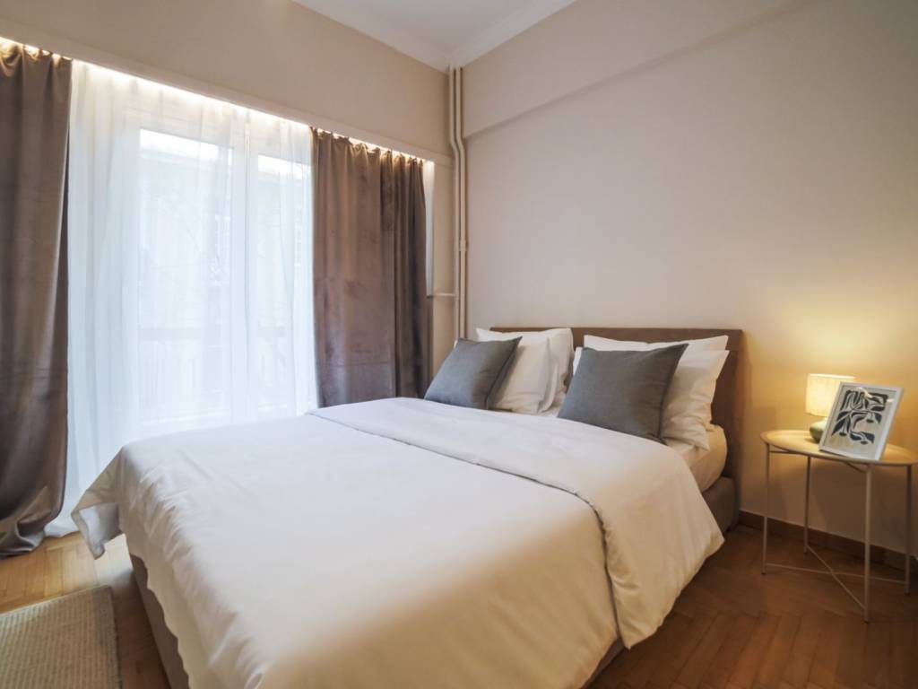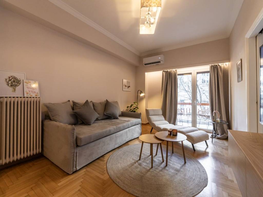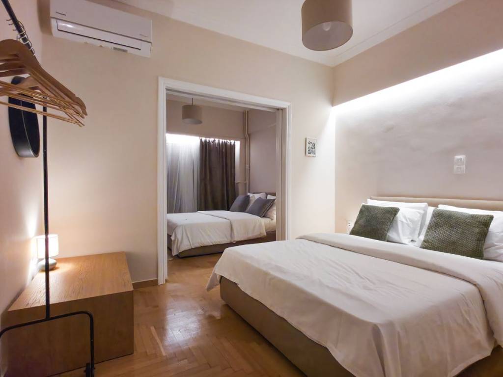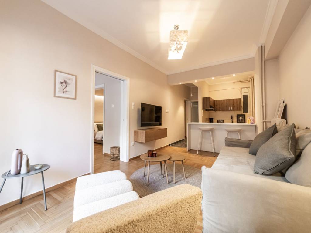 Ενοικίαση διαμερίσματος στο κέντρο της Αθήνας 80 τμ πλήρως επιπλωμένο με κουζίνα σαλόνι με καναπέ που γίνεται κρεβάτι ψυγείο πληντυριο δύο άνετα υπνοδωμάτια μπάνιο τηλεόραση έπιπλο τηλεόρασης .