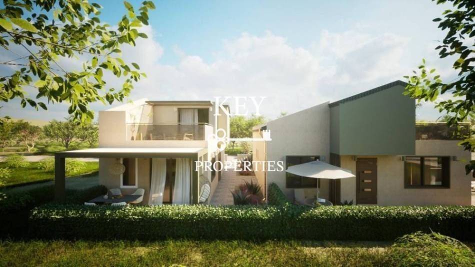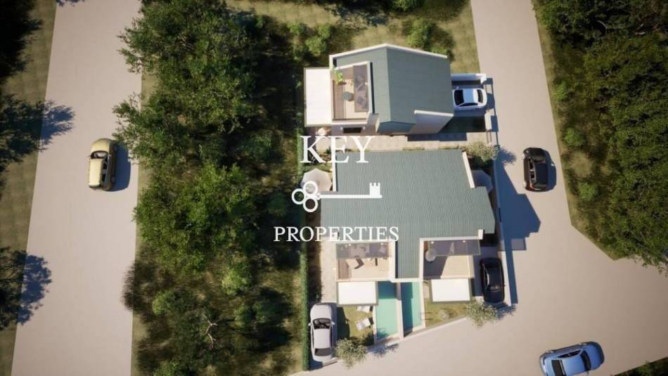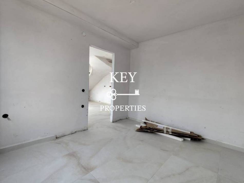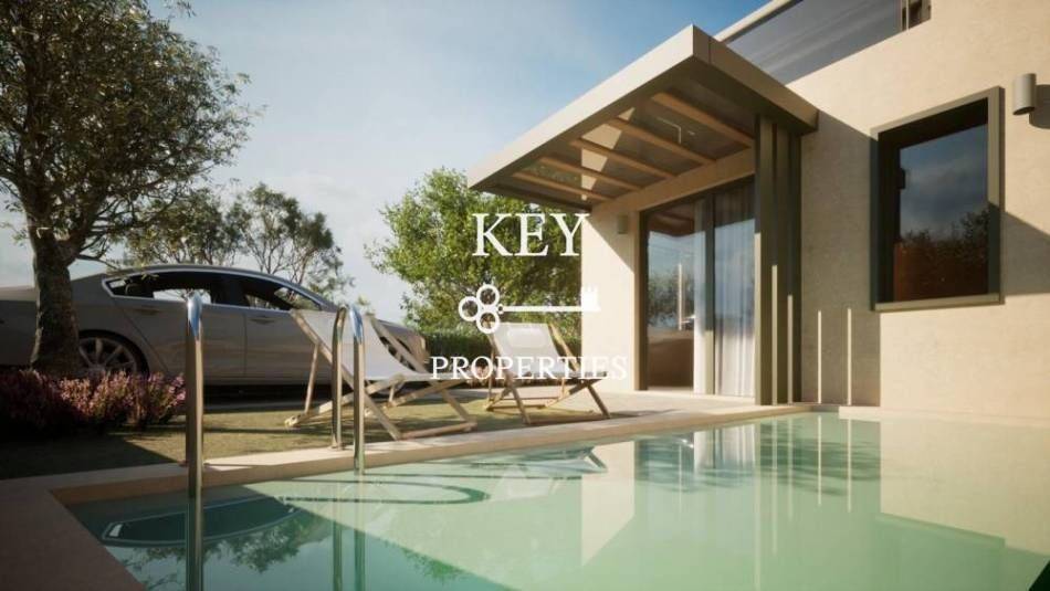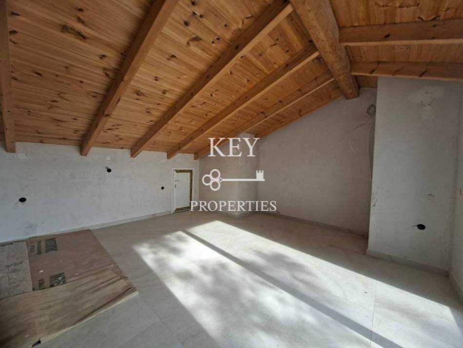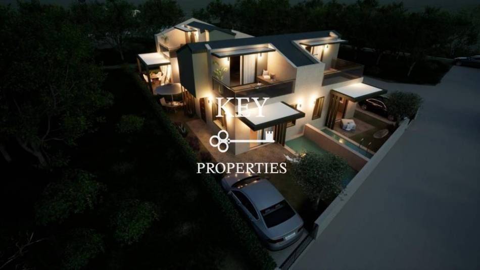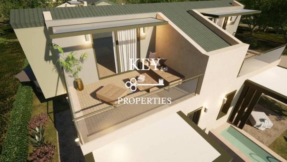 Luxurious newly built maisonette, with sea view, 80sq m (72sq m net), for sale 180m. from the beach. It is developed on two levels, has two spacious bedrooms, a bright open plan kitchen with living space, two bathrooms and storage space. It has a private garden, swimming pool, large verandas, air conditioning, solar water heater, armored door, double glazing window frames with insect screens and a parking space. It is situated in an ideal location, close to supermarkets, shops, beach bars and restaurants.