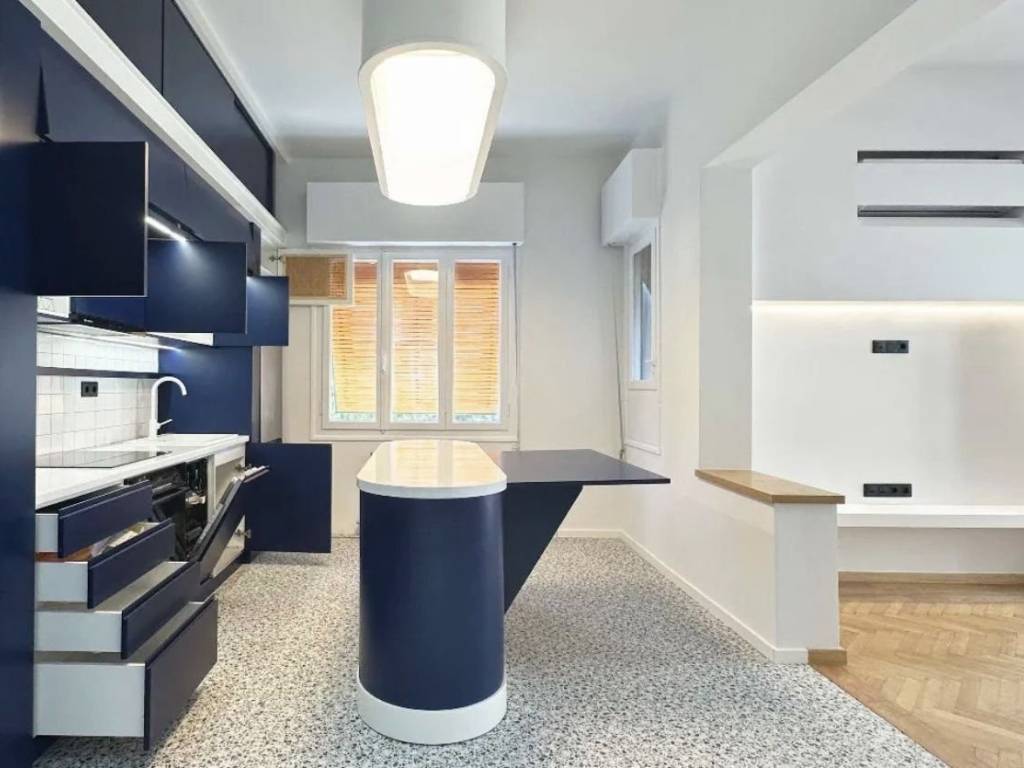 KYPSΕLI – FOKIONOS NEGRI. Just like Via Veneto in Rome, Fokionos Negri Street, during the 1950s, 60s and 70s was the most hip address in Athens while its bars and restaurants attracted the fashionable and intellectual crowds of the city. On this iconic street and in a traditional 1950s building we are offering a full-3rd floor property of 135m² divided into 2 apartments ( 90 m² and 45 m² respectively). Fully refurbished and furnished to a high standard. 2 living rooms, open-plan kitchen, kitchenette, 2-3 bedrooms, 2 bathrooms. An ideal solution for mixed use home and office.