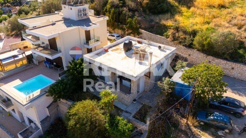 It consists of two bedrooms and a traditional loft (ontas), as well as an open-plan kitchen and living-dining area with a fireplace. The property includes a veranda with open, panoramic views of the settlement and the sea, along with a pre-configured space suitable for a swimming pool, depending on the needs of the new owner. The property enjoys an exceptionally privileged location. It is situated in a quiet area with direct access to the National Road, facilitating convenient travel to Heraklion and western Crete. Heraklion city center is only 8 km away. Just one minute (1’) by car, or 250 meters, from the well-known beaches of Paleokastro and Chelidoni, and within very close proximity to other beautiful beaches such as Ligaria, Psaromoura, and Made, offering easy access to the crystal-clear waters of the region. This property is an ideal choice either as a permanent residence or as an investment opportunity with strong potential for tourist development, thanks to its location, views, and remaining building capacity.