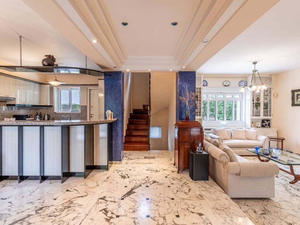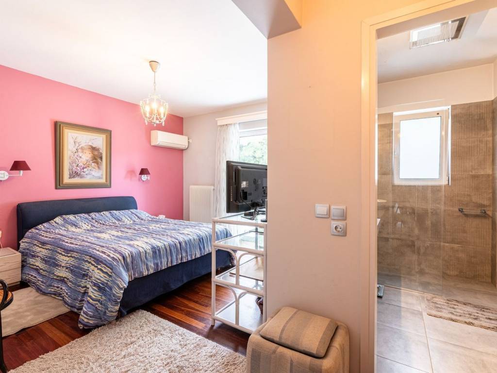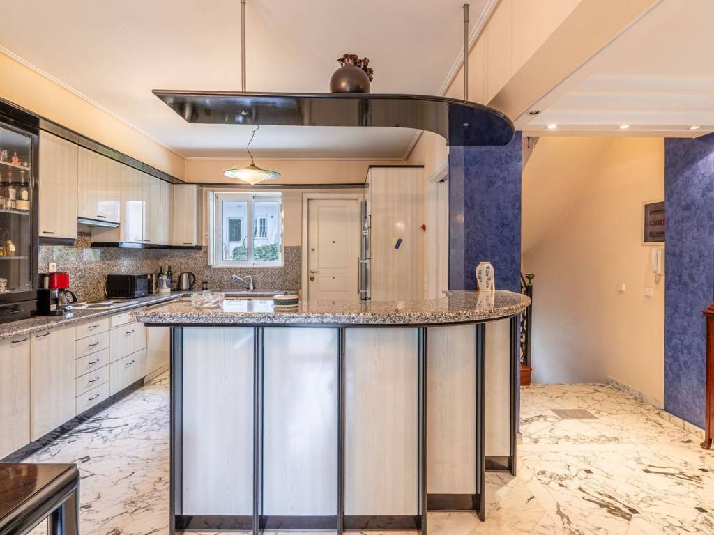 We welcome you to an elegant residence in Nea Kifisia, arranged over three levels and totaling 242 sq.m., harmoniously combining comfort and sophistication. The entrance reveals a warm space consisting of a living room with a fireplace, a dining area, and an open-plan kitchen, while the marble flooring adds a touch of luxury. On the first floor, you will find 3 bedrooms (one of which is a master bedroom) and 1 additional bathroom. Ascending to the attic, there is a study area and a 47.6 sq.m. terrace offering a magnificent view of the greenery—ideal for relaxation. The property also includes a large, bright living room or playroom on the semi-basement level, featuring 1 bedroom, 1 bathroom, a laundry area, and storage space. In addition, a security system ensures safety, and 2 parking spaces in the garage provide convenience. Location: Kifissia is one of the most prestigious suburbs of Northern Athens, a quiet, green oasis and a commercial hub, just 12 kilometers away from the city centre. Unique features: Kifissia, home to wealthy Athenian families in the post-War period has retained its genteel, old world charms and remains one of the most sought-after addresses. A refreshingly green area with several parks, large public squares, an upscale open-air shopping district with haute couture brands and international labels, banks, refined restaurants, trendy bars, sports clubs and fitness centres. It is close to most international schools and attracts a lot of foreign residents. Its cosmopolitan nature reflects in the speciality supermarkets and food stores that abound. Two of Greece’s largest malls are just a 5-minute drive away. Accessibility: Kifissia is easily accessible by a regular train and bus service to the centre of Athens. The international airport is a 45-minute drive via the Attiki Odos. Investment potential: Kifissia has always been attractive to real estate investors so property prices here will always offer a good return on investment.