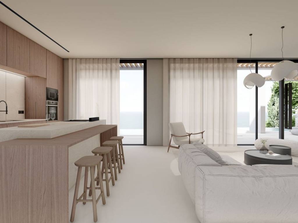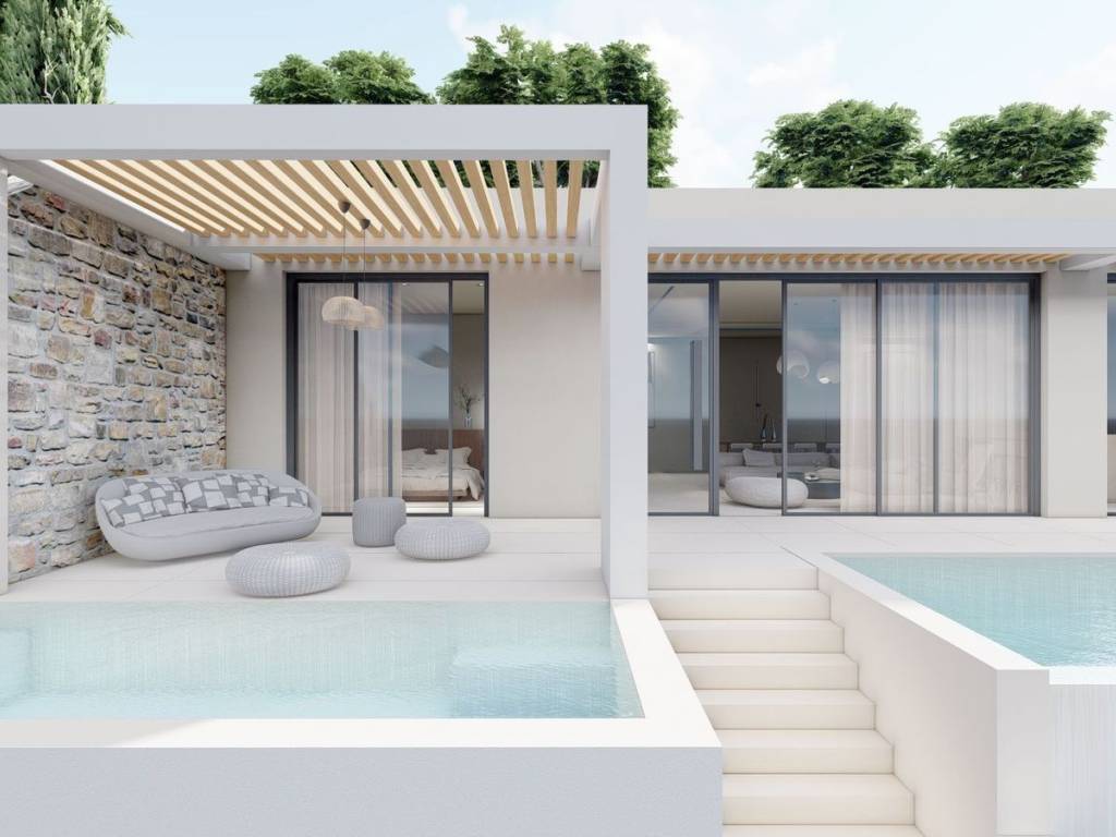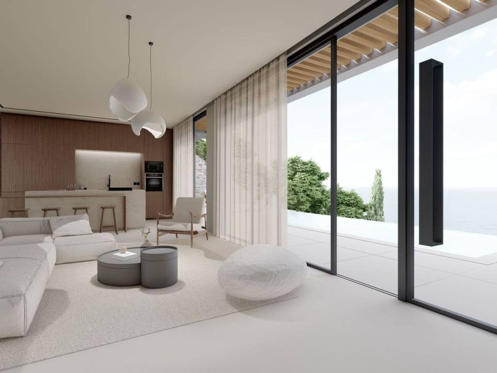 Perched at an altitude of 190 meters and just 400 meters from Kathisma Beach, this under-construction subterranean villa combines unparalleled views of the Ionian Sea with complete privacy. The villa is scheduled for completion on April 1, 2027, and its architecture blends seamlessly with the hillside, using natural materials and contemporary design. The construction features durable concrete, high-quality insulation, and an underground ventilation system, ensuring comfort and energy efficiency. The villa sits on a 1,000 m² plot with a total built area of 180 m². It includes three bedrooms, each with private bathrooms and walk-in closets, a living area with large glass surfaces offering sea views, and a modern kitchen equipped with smart home technology and a wine cellar. The outdoor spaces integrate architecture with nature. An infinity pool with seawater and a Jacuzzi complement the stone terrace with an outdoor fireplace, while the garden, featuring Mediterranean vegetation and subtle lighting, creates a serene atmosphere. There is also an outdoor shower for warm summer days. Despite its secluded location, the villa remains close to Lefkada town, just 10 minutes away, and Aktio Airport, 30 minutes away, providing easy access to the rest of Greece and Europe. This is a home that combines privacy, comfort, and breathtaking views, offering a lifestyle immersed in nature and the light of the Ionian Sea. Lefkada is one of the few Greek islands accessible by car, enhancing both accessibility and demand. Known for its stunning beaches and growing tourism sector, it attracts buyers seeking holiday homes, boutique hotels, and premium land plots. The real estate market offers a range of opportunities, from renovating traditional houses to developing luxury villas with high rental yields. Its strategic location places it near Preveza, Paxos, and Kefalonia, making it a valuable hub in the Ionian region.