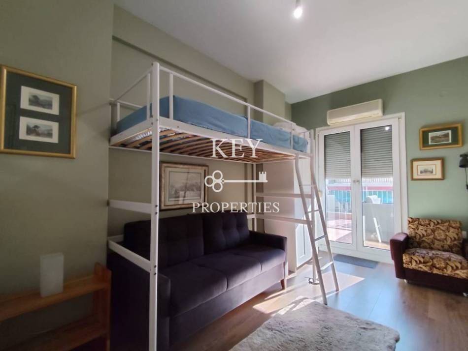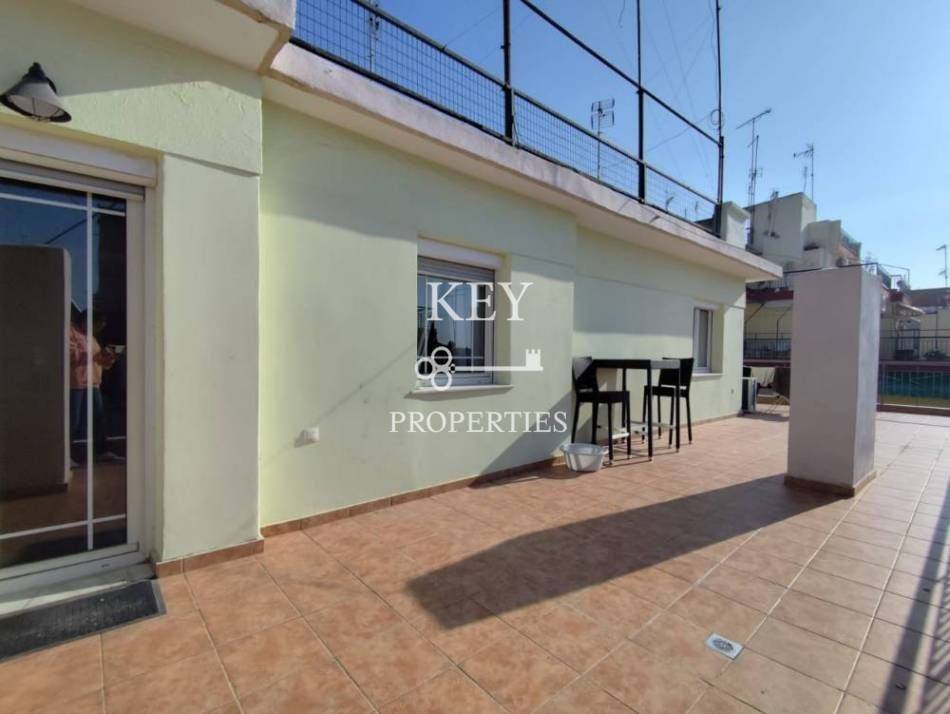 For sale, with unlimited view, luxuriously renovated apartment, 110sq.m. net with 120sq.m. terrace, on the 4th floor without elevator. It consists of two spacious bedrooms, a bright kitchen with opening to a large living - dining room, a bathroom and a WC. It is furnished, has electrical appliances, air conditioning, double glazing window frames, storage space and individual natural gas heating. In a unique location in the heart of the city, next to bus stops, school, market and 650m. from the expected metro station.