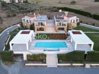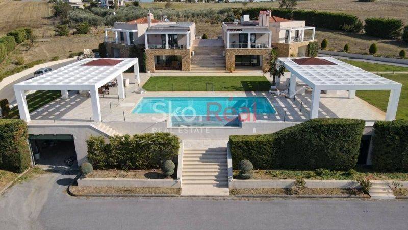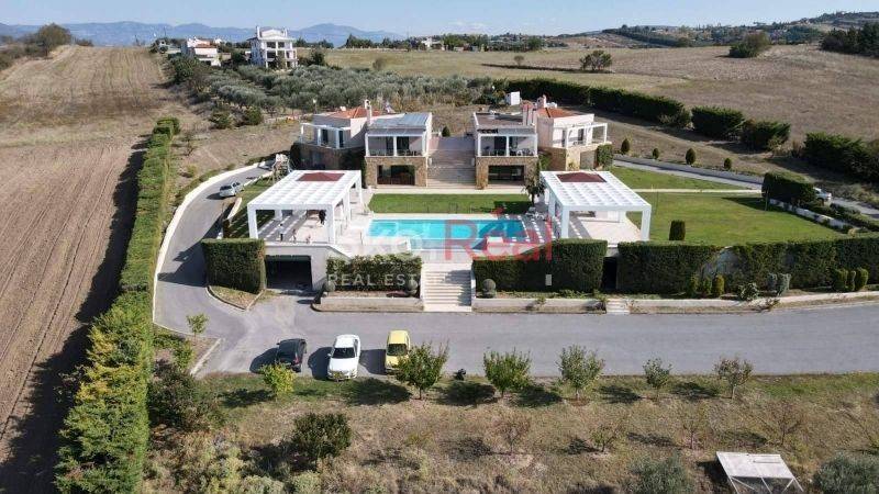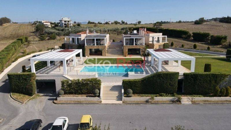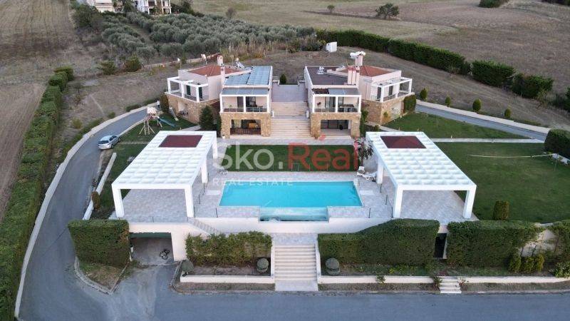 Property Features: Each residence consists of two apartments, which can function either as separate units or be unified into a single large home. Ground Floor Apartment:Spacious living room with fireplaceSemi-separate kitchen3 bedrooms (one of them a 50 sq.m. master suite)Bathroom, WC, and storage room First Floor Apartment:Large living room with stunning views and fireplaceIndependent kitchen3 spacious bedrooms with wardrobesBathroom and WCComfort & Amenities:Autonomous oil heatingAir conditioning throughoutSecurity doorMosquito screens on all windowsAlarm systemVideo intercomAmple parking space The property also includes an installed photovoltaic system that offsets electricity consumption with the public power grid (DEI).Ideal for private use, luxury rental investment, or even dual-family living. Located just a short drive from Thessaloniki Airport, combining privacy, accessibility, and luxury. SKONTZOS GRIGORIS TEL: 2310390015 6948588870 www.skoreal.gr Visit us in our new offices (Profitis Ilias 21 Pylea) or on our website (www.skoreal.gr) for any real estate you need. You can do like on Facebook page to learn first that new is in the property market. https://www.facebook.com/skoreal/ In the indication of the property it is necessary to indicate the police ID or the VAT number. * SKOREAL * REAL ESTATE OFFICE PROJECT ILIA 21 PYLAIA TEL: 2310 390015 FAX: 2310 390016 EMAIL: info@skoreal.gr www.skoreal.gr
