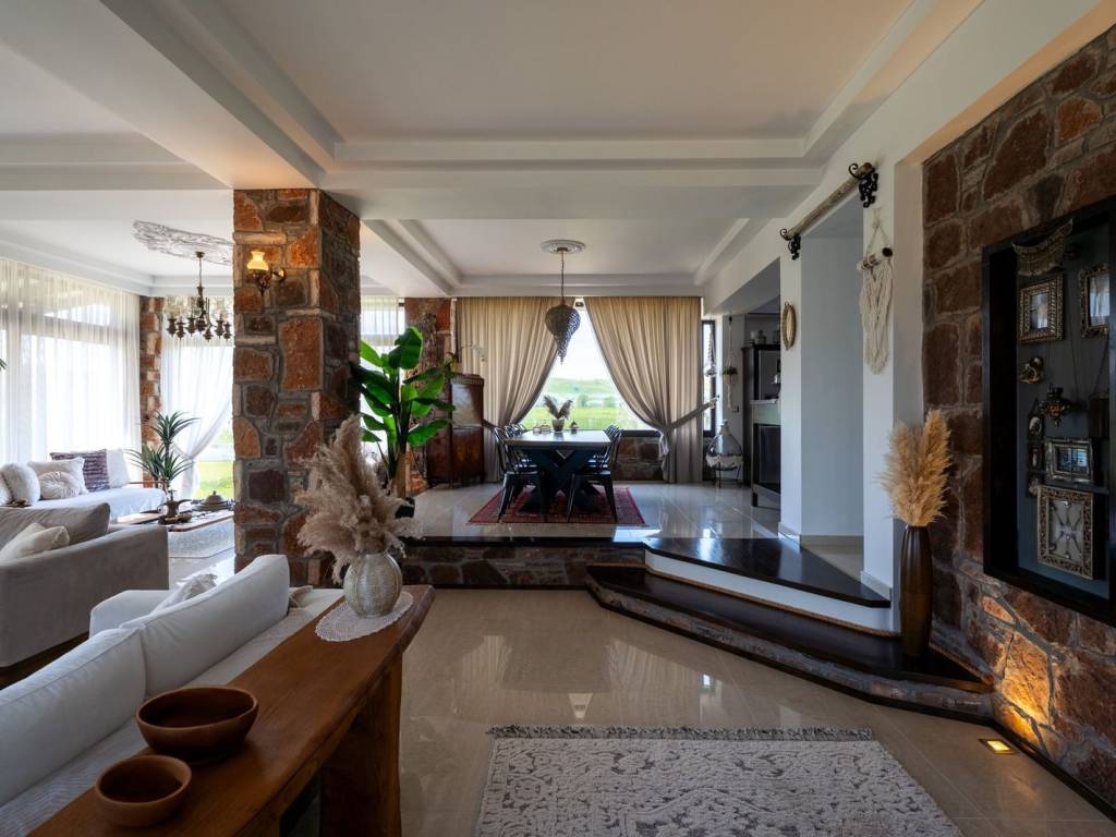 Welcome to the idyllic area of Tagarades, a rare opportunity for luxurious living. Three properties are available, offering ample space and comfort, on a stunning 6,500 square meter plot surrounded by lush gardens. The interior of each house exudes elegance and warmth. Each residence provides the ideal space for relaxation and hospitality. The luxurious granite tile floors add a touch of luxury. The open view of the mountains and greenery creates a unique feeling of peace and well-being. Each house stands out for its unique features, such as the built-in fireplace, which provides warmth and atmosphere on cold nights. The kitchen is equipped with modern appliances and built-in cabinets, offering practicality and style. Security is ensured with alarm systems, electronic gates, and security doors. It consists of a 185 sq.m. ground floor with 3 bedrooms, a large living room-kitchen, and two bathrooms. The 100 sq.m. basement consists of an open-plan space, a bathroom, and a room. Heating is provided by a pellet boiler with underfloor heating. There is a solar water heater, alarm system, satellite dish, telephone communication center with the three maisonettes and the main gate, screens on all windows, and protective bars on the windows. There is also a central vacuum cleaning system in operation. With its unbeatable views, refined aesthetics, and unparalleled quality, this is a unique opportunity not to be missed. The residence located in Tagarades offers a unique opportunity for those seeking luxury and exclusivity. It is situated in one of the most sought-after areas of Thessaloniki, combining the tranquility of the countryside with the convenience of the nearby city. The area is renowned for its high aesthetics and quality of life, attracting distinguished residents who appreciate peace and privacy. The local infrastructure is excellent, with easy access to the center of Thessaloniki in just 25 minutes by car, while Macedonia Airport is only 15 minutes away, making it ideal for frequent travel. Public transportation is reliable and offers convenient connections to major urban centers. Tagarades offers abundant options for recreation and cultural activities. The nearby horse riding facilities and walking trails in the lush hills of the area provide moments of relaxation and rejuvenation. Additionally, the proximity to the sea allows easy access to beaches and water sports, while the gastronomic options from local taverns and high-end restaurants impress with their variety and quality. The property in Tagarades is not just a house, but a statement of elegance and a selected lifestyle. Its strategic location and unparalleled aesthetics create a combination that is hard to find elsewhere. Seize the opportunity to live in an environment that combines nature with luxury, in a location that caters only to the most demanding buyers.