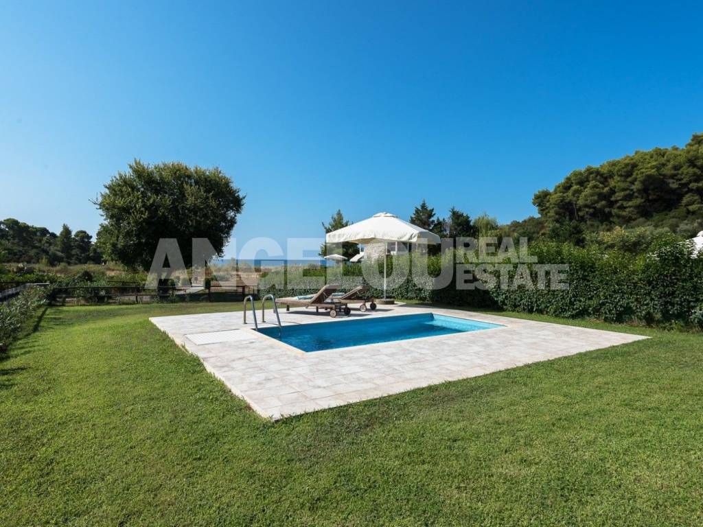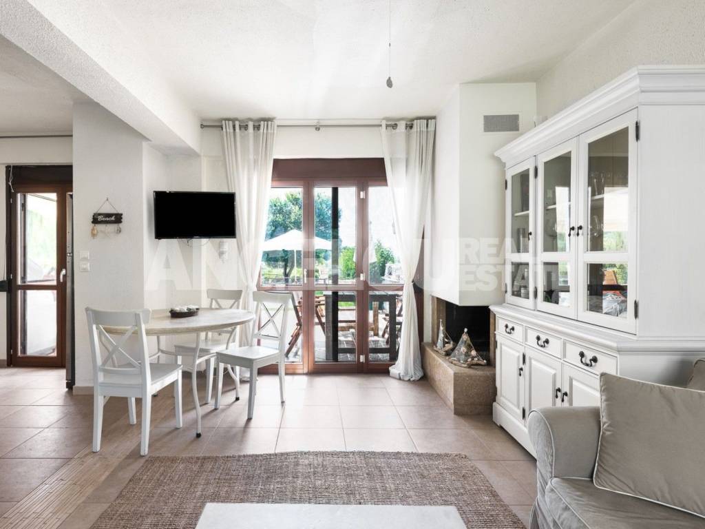 Halkidiki – Neos Marmaras. For sale: a beautiful 132 sq.m. maisonette with an impressive, unobstructed sea view, just 200 meters from the sandy beach. The property is part of a maisonette complex and comes with a 520 sq.m. private garden, as well as two private parking spaces. It is developed on three levels: • Semi-basement: 1 bedroom and 1 bathroom with shower. • Ground floor: Comfortable living room with kitchen, fireplace, and a half bathroom.. • First floor: 3 spacious bedrooms with wardrobes and 1 bathroom with shower. The property features large balconies with a unique sea view and a 12.5 sq.m. swimming pool in the outdoor area. The maisonette is in excellent condition and is offered fully furnished, including all electrical appliances. ANGELOU REAL ESTATE Tel.: +302310263215, +302310263775 Mob.: +306945385155 www.angelou-realestate.gr email: info@angelou-realestate.gr Mitropoleos 46-48, Thessaloniki, 54623, Greece