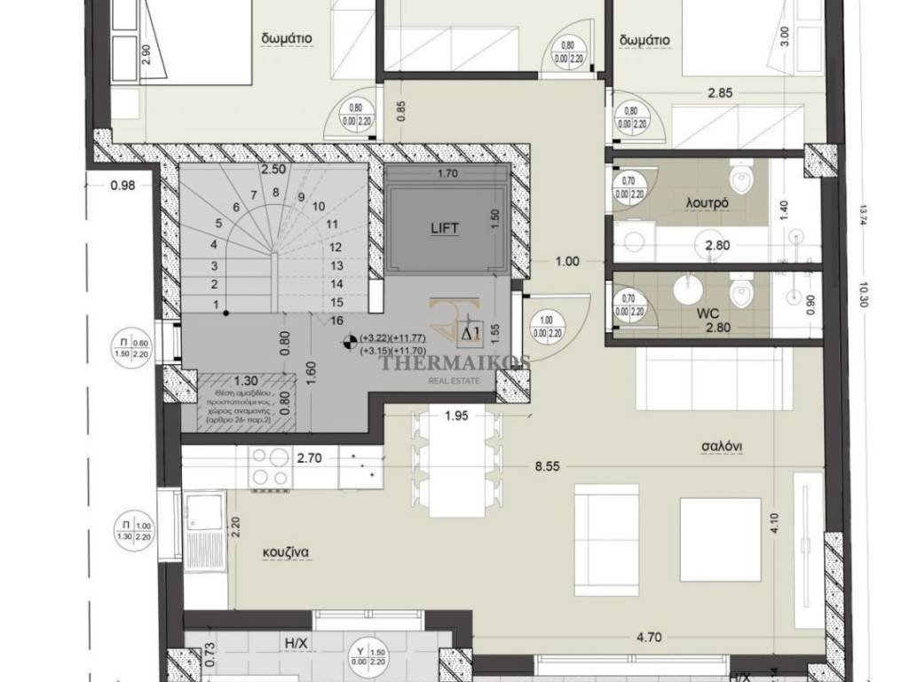 "Καλαμαριά - Νέα Κρήνη". Πωλείται νεόδμητο, οροφοδιαμέρισμα, πρόσοψης 120,40 τ.μ. -Πρόκειται για ένα διαμπερές και φωτεινό ακίνητο. -Βρίσκεται στον 4ο όροφο της οικοδομής και διαθέτει ασανσέρ. Το ακίνητο ε αποτελεί μια αξιόλογη επιλογή για οικογένειες και εργαζόμενους. Κατασκευής 2024 Αποτελείται από 3 υπνοδωμάτια με ντουλάπες, σαλοκουζίνα και 1 μπάνιο. -Επιπλέον διαθέτει βεράντα, -αποθήκη υπογείου -και συγκεκριμένη θέση στάθμευσης. Στα εσωτερικά του στοιχεία αξίζει να σημειωθούν η πόρτα ασφαλείας. Διαθέτει κουφώματα αλουμινίου με διπλά τζάμια. Τα δάπεδα είναι από πλακάκια. Διαθέτει αυτόνομη ενδοδαπέδια θέρμανση με φυσικό αέριο (ατομική). -Η ενεργειακή του κλάση είναι A. Βρίσκεται κοντά σε στάση λεωφορείου και πάρκο. -Άμεση πρόσβαση σε πάρκο, παραλία, και σε απόσταση 250μ. από στάση μετρό. Τιμή πώλησης: 375000€. Κωδικός ακινήτου: 10869 Για περισσότερα ακίνητα επισκεφθείτε την ιστοσελίδα μας http://www.thermaikosrealest.gr. Thermaikos Real Estate Κλεάνθους 39, Θεσσαλονίκη, Ελλάδα http://www.thermaikosrealest.gr info@thermaikosrealest.gr Τηλέφωνο: 2310900700 Κινητό: 6907219389, 6956139149 ΥΠΕΥΘΥΝΟΣ ΑΚΙΝΗΤΟΥ: ΣΑΛΒΑΡΗΣ ΓΙΩΡΓΟΣ Προσοχή! Για την υπόδειξη του ακινήτου είναι απαραίτητη η υπόδειξη της αστυνομικής ταυτότητας και του Α.Φ.Μ. σας σύμφωνα με τον Ν.4072/11-4-2012 ΦΕΚ 86 Α.