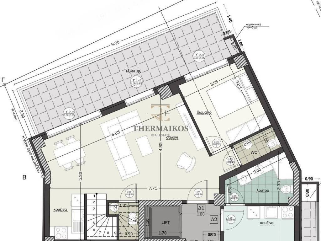 "Ανάληψη - Μπότσαρη - Νέα Παραλία Πωλείται νεόδμητη, Μεζονέτα, πρόσοψης 141,20 τ.μ.. (Δ1 Στην κάτοψη) Πρόκειται για ένα γωνιακό ακίνητο. Βρίσκεται στον 5ο-6ο όροφο της οικοδομής και διαθέτει ασανσέρ. Το ακίνητο αποτελεί μια αξιόλογη επιλογή για οικογένεια και εργαζόμενους. Σε κεντρικό σημείο, με πολύ ωραία ανοιχτωσιά. Αποτελείται από 4 υπνοδωμάτια με ντουλάπα, σαλόνι κουζίνα, 2 μπάνια και 1 wc . Επιπλέον διαθέτει βεράντα, συγκεκριμένη θέση στάθμευσης και αποθήκη υπογείου. Στα εσωτερικά του στοιχεία αξίζει να σημειωθούν η εσωτερική σκάλα, η πόρτα ασφαλείας και η προεγκατάσταση του συναγερμού και κλιματισμού. Διαθέτει κουφώματα αλουμινίου με διπλά τζάμια. Τα δάπεδα είναι από πλακάκια. Διαθέτει αυτόνομη θέρμανση με φυσικό αέριο (ατομική). Η ενεργειακή του κλάση είναι A+. Βρίσκεται κοντά σε στάση λεωφορείου, στάση μετρό και παραλία. Με βάση τα χαρακτηριστικά του μπορεί να χαρακτηριστεί ως μια πολύ καλή επενδυτική επιλογή. Τιμή πώλησης: 460000€. Κωδικός ακινήτου: 10874 Thermaikos Real Estate Κλεάνθους 39, Θεσσαλονίκη, Ελλάδα http://www.thermaikosrealest.gr info@thermaikosrealest.gr Τηλέφωνο: 2310900700 Κινητό: 6907312688 Προσοχή! Για την υπόδειξη του ακινήτου είναι απαραίτητη η υπόδειξη της αστυνομικής ταυτότητας και του Α.Φ.Μ. σας σύμφωνα με τον Ν.4072/11-4-2012 ΦΕΚ 86 Α.
