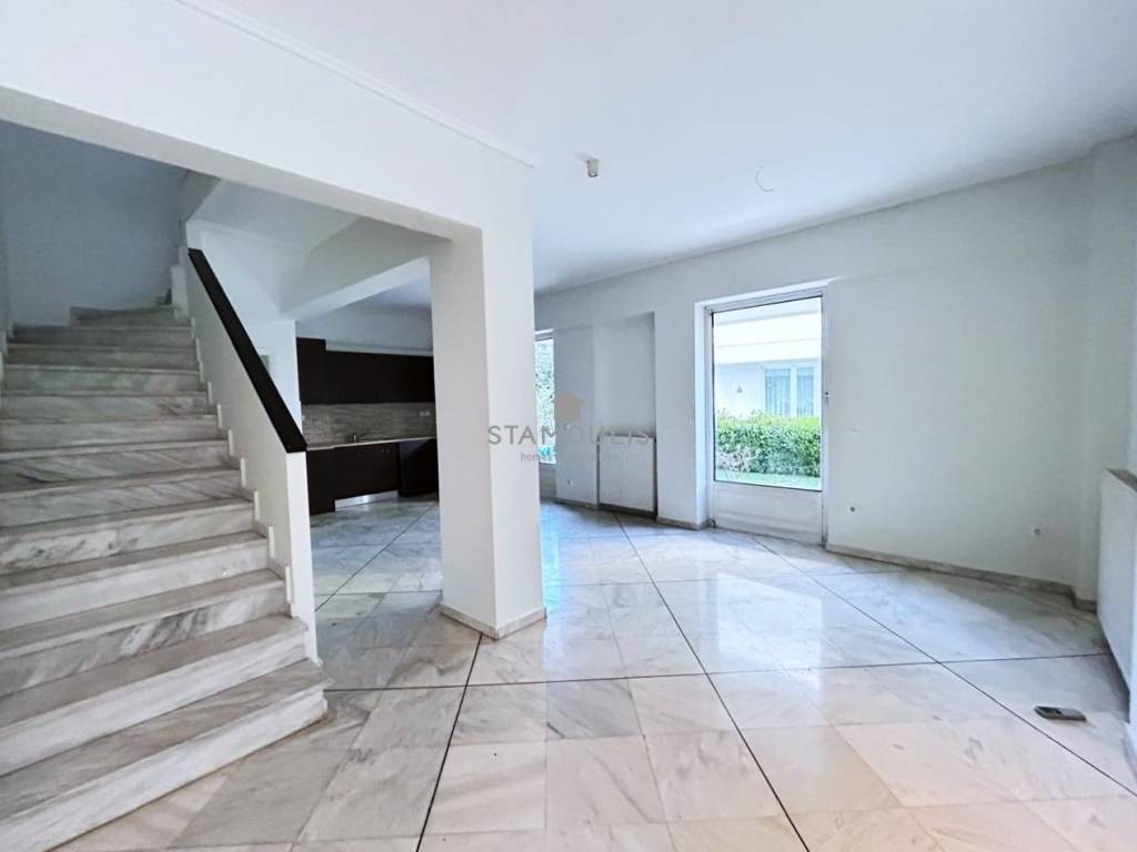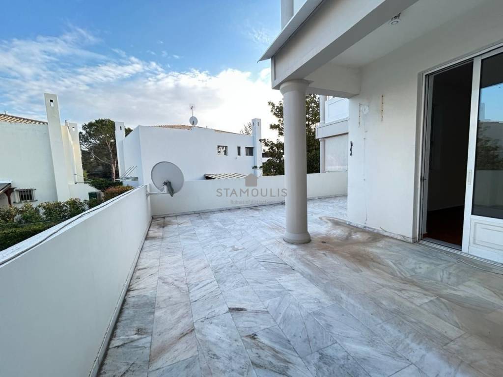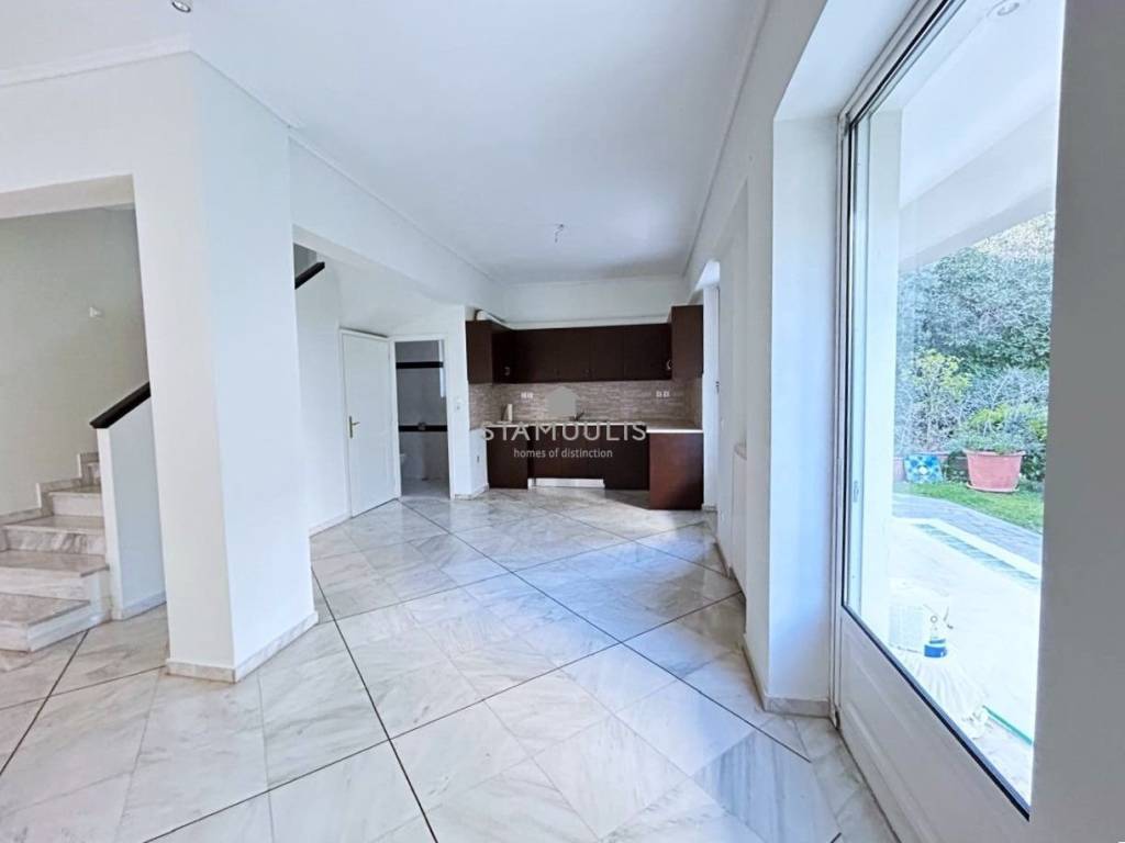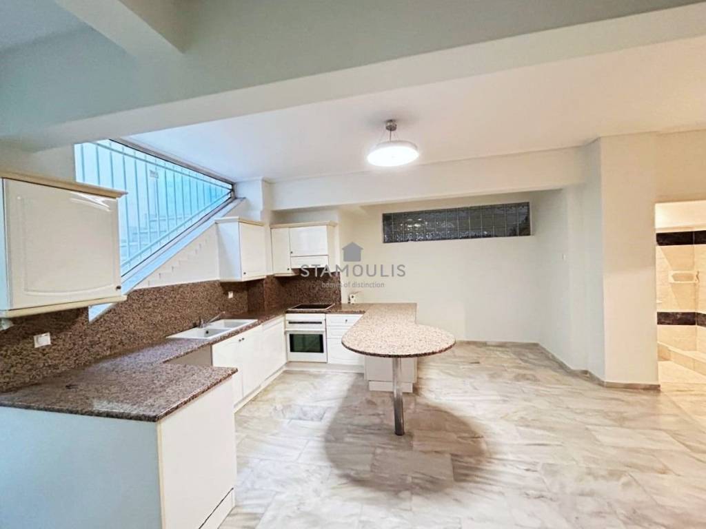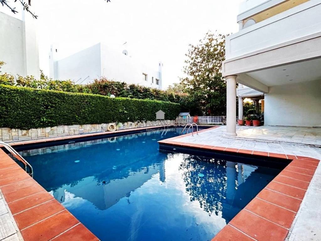 Maisonette 220 sq.m, in 3 levels, built in 2000, in Politeia. It consists of 3 bedrooms, 3 bathrooms, impressive reception area with fireplace and large openings with direct access to the garden and pool, open-plan kitchen, bright playroom with separate entrance, second kitchen, bathroom and 1 parking space. It also has aluminum frames with double glazing, security door and independent heating with oil.