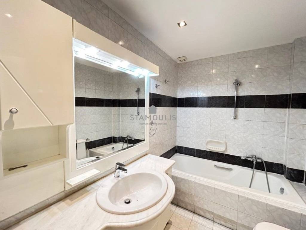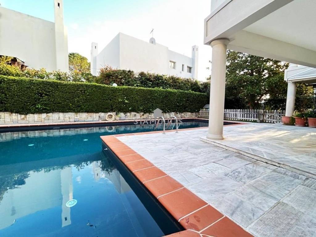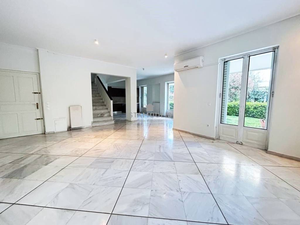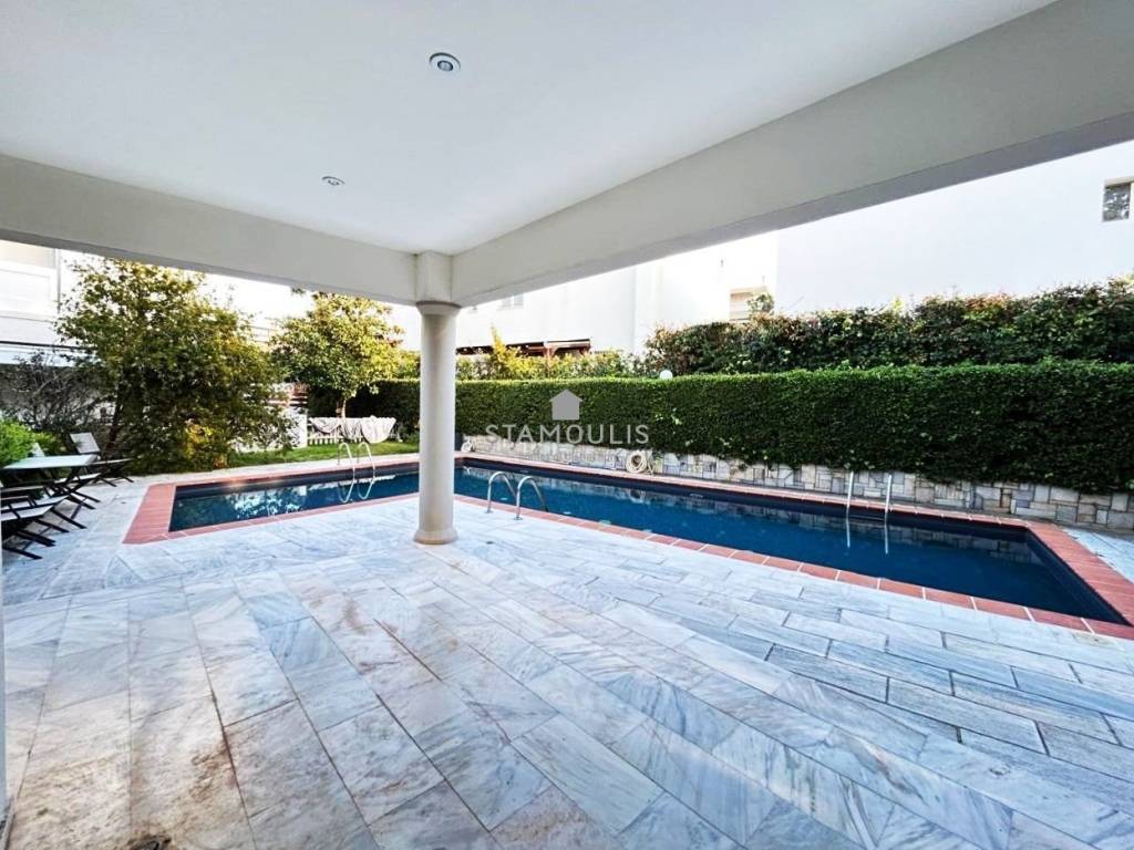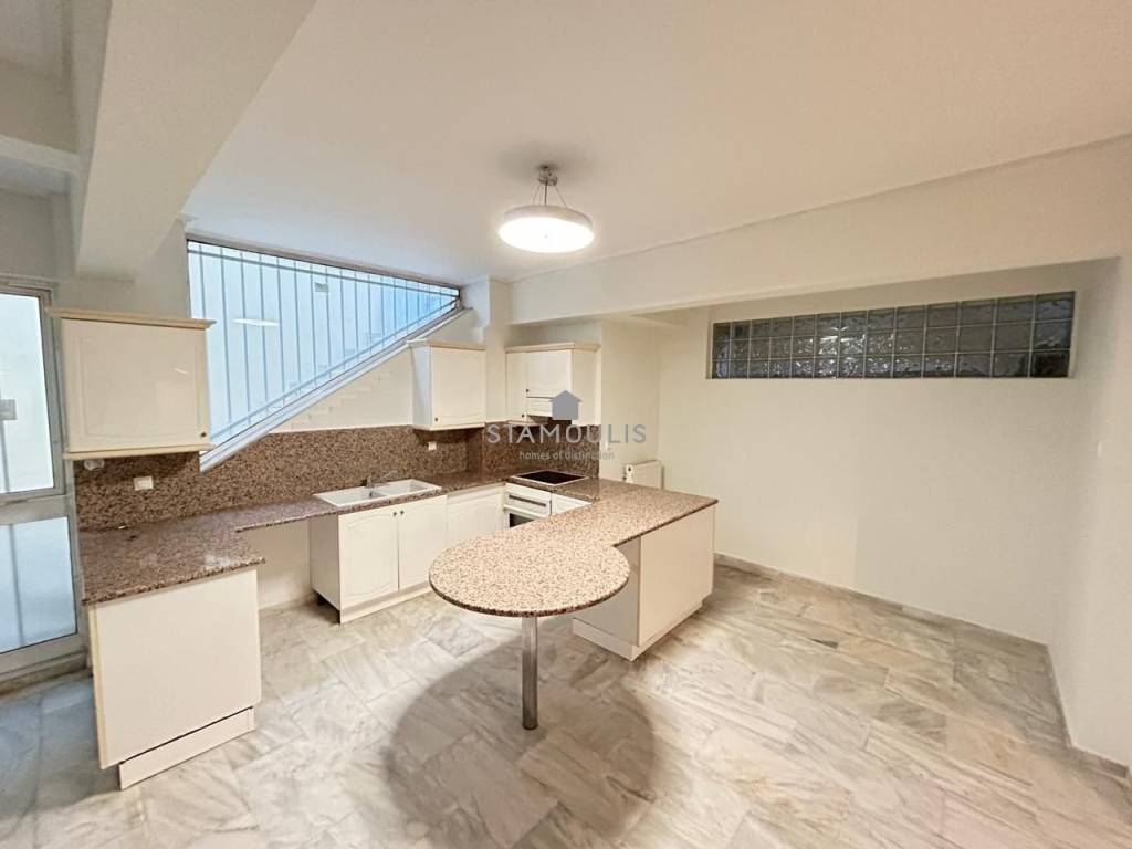 Maisonette 220 sq.m, in 3 levels, built in 2000, in Politeia. It consists of 3 bedrooms, 3 bathrooms, impressive reception area with fireplace and large openings with direct access to the garden and pool, open-plan kitchen, bright playroom with separate entrance, second kitchen, bathroom and 1 parking space. It also has aluminum frames with double glazing, security door and independent heating with oil.