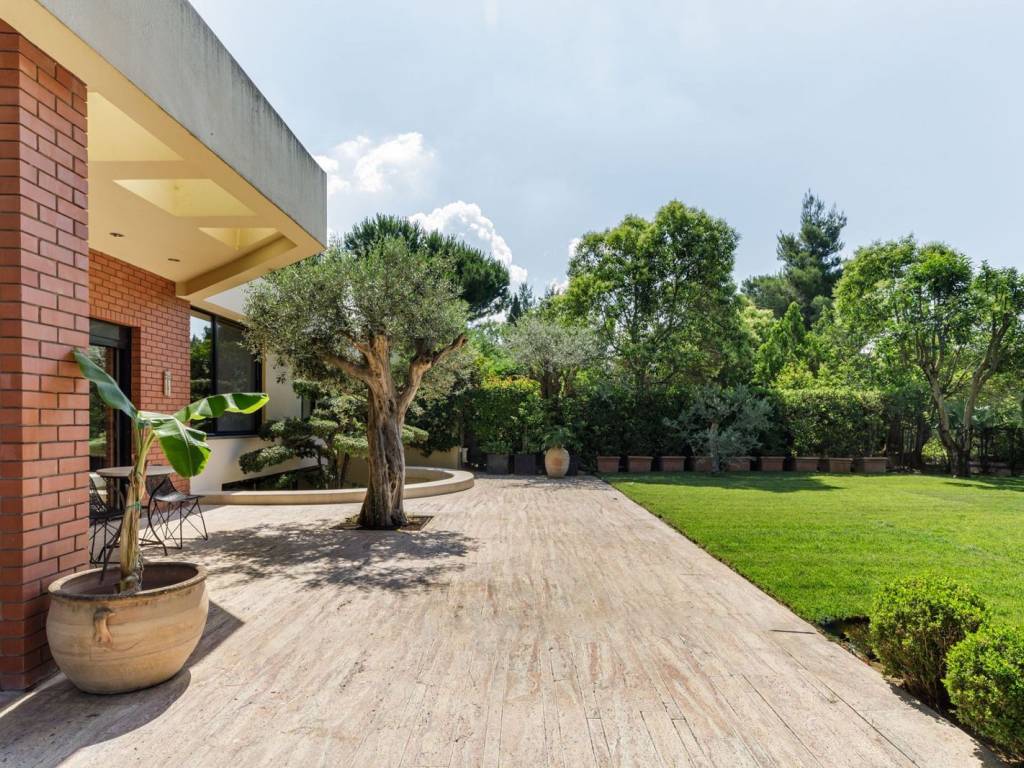 If you ever dreamed of living in a villa full of light, with a spacious garden around the house, then this villa could be your next acquisition! This villa consists of a large and highly imposing living room with the dining area, a spacious kitchen, a master bedroom with a private bathroom, 1 more bedroom and 1 bathroom. An extra opened room which is connected with the living room gives the possibility of separation for an additional third bedroom in case of a need. Unique aesthetics property with fireplace in the living room and large balcony doors that flood the space with light and lead directly to the garden. Through the bedrooms you can enjoy the view of the garden, the endless horizon and the surrounding hills. Wooden and marble floor in the main areas. There is also an air conditioning installation and autonomous gas heating. Additional amenities of the property that make it unique are the auxiliary kitchen in the ground floor, a second luxury living area, 1 bathroom and a storage space. Also, there is a separate house for the staff in the garden and private parking for three vehicles. Located in a quiet area in Panorama, with a strong sense of neighborhood, just a few kilometers away from the local market, large supermarkets, restaurants, cafes, etc., 1 minute away from Komninon Avenue, next to the bus station and only 5 minutes away from local schools. Location: Panorama is located at the east part of Thessaloniki, at the foot of Mount Chortiatis and at an altitude of 250 meters. Unique Features: Panorama, due to its amazing location as it is situated in a beautiful forest, with panoramic views of the entire Gulf of Thessaloniki, is considered one of the most privileged areas of the wider region, offering an abundance of residences of high standards and special aesthetics. The area also has its own municipal summer cinema, swimming pool and a gym of Olympic standards. Panorama has three public schools, a high school and many private schools of all levels. Accessibility: Panorama is just 14 km from the center of Thessaloniki. Public transport to the city center and to other areas is provided by bus line 58 of the O.A.S.TH. Investment Opportunity: Panorama maintains a high level of investment interest. It is a purely residential area of middle and high incomes, and in recent years there has been a significant increase in the construction of luxury housing and single-family homes, a result of the socio-economic development of the country until recently.