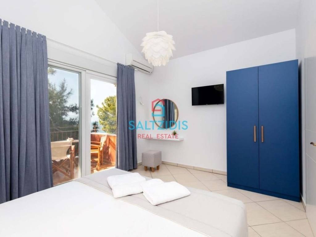 Property Code: 1-374 - House FOR SALE in Thasos Skala Rachoniou for € 800.000 . This 160.48 sq. m. furnished House consists of 3 levels and features 2 Bedrooms, an open-plan kitchen/living room, bathroom and a WC. The property also boasts tiled floor, view of the Sea, Window frames: Synthetic, Armourplated door, a storage unit sqm, garden, fireplace, A/C, electrical appliances, insect screens, double-glazed windows, solar-powered water heater, entry stairs, ceramic roof, open space, internal staircase. The building was constructed in 2010 and renovated in 2022 . Building Energy Rating: C Distance from sea 20 meters,