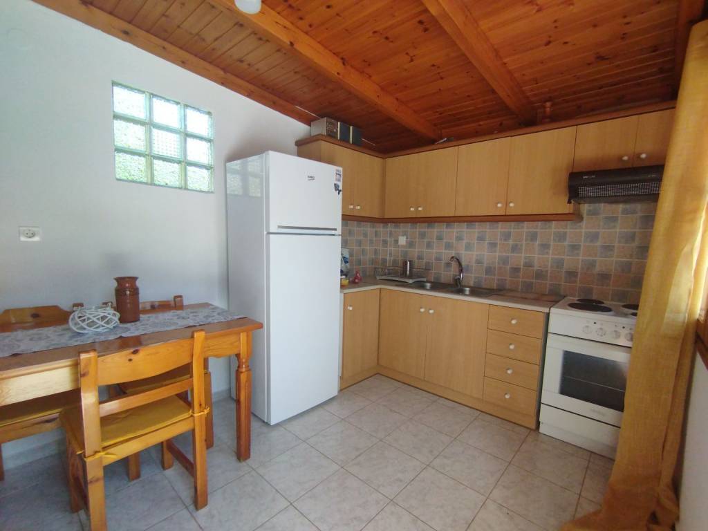 Petries, Evia. A fully renovated 40 sq.m. detached house is available for rent, ideal for a permanent residence or a holiday home. The property is located within the village settlement and is just a 10-minute drive from the area's most beautiful beaches. It comes fully furnished and equipped with all necessary electrical appliances. It features a comfortable bedroom, a functional kitchen, and a bathroom, and includes two air conditioning (A/C) units for heating and cooling. A major advantage of the property is the private courtyard with a garden, a space that offers complete relaxation and tranquility. The house is also available for long-term annual lease.