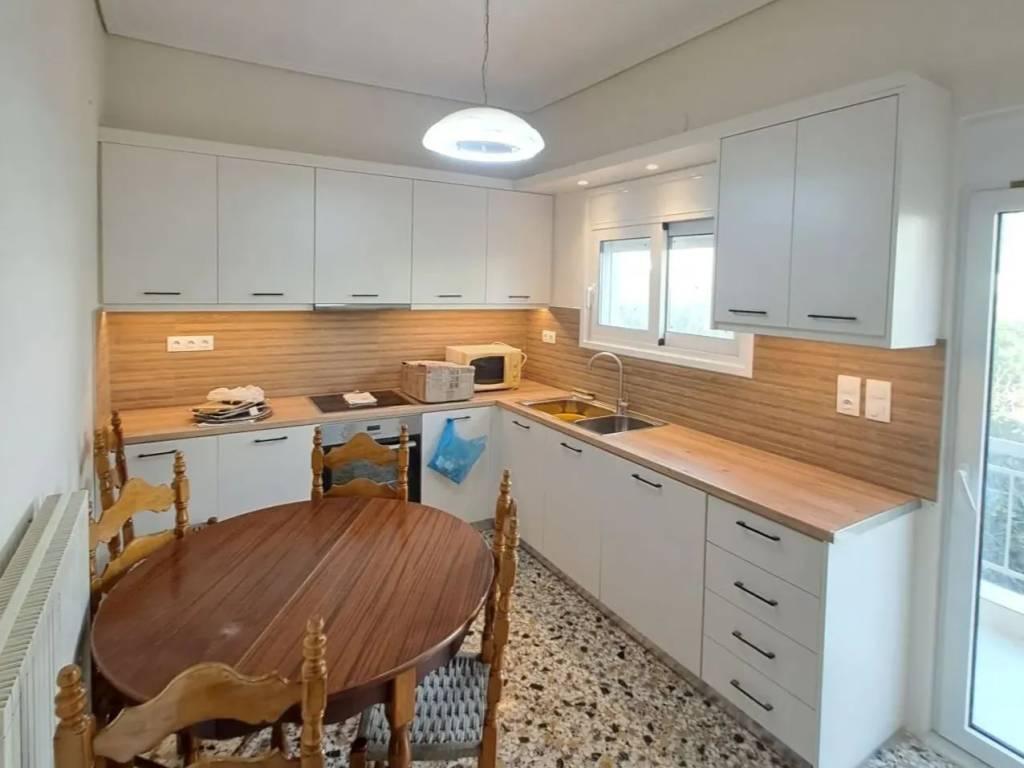 For rent: a renovated 90 sq.m. apartment, very close to the center of Karystos. The residence consists of a living room, kitchen, two bedrooms, an additional empty space, and two bathrooms. It also includes a storage room and two balconies (one facing south and one facing north). Heating is provided by radiators (oil), as well as a new A/C unit.