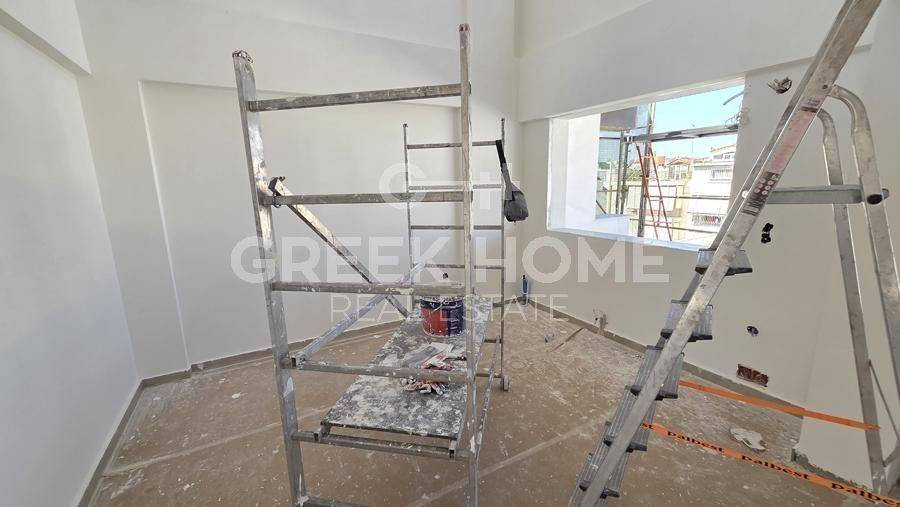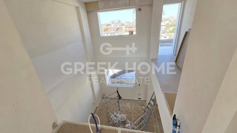 Moschato - Full floor Maisonette 131sqm unfurnished, bedrooms 3, levels 2, 4th - 5th, under construction, constructionstage frames, year built 2025, energy class A+, living room, kitchen, 2 bathrooms, heating type: autonomous (heat pump), parking ground floor, quiet, dual aspect apartment, luminous, acropolis view, frontage, painted, drop ceiling, electric roller shutters, solar heater, external thermal insulation, balconies, large balconies, elevator, garden, thermal shut-off frames, double glazed windows, door screen, ceramic tiles floors, handicap ramp, without common charges, secure door, alarm, video doorbell, luxurious, internal staircase, guest house, ev charger, satellite, internet, pets allowed, special offer.