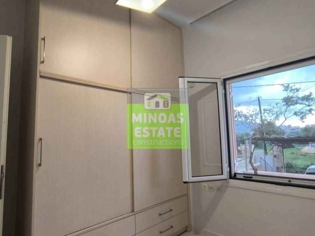 Souda, Center: Renovated airy and bright Detached House of 100 sq.m. for rent. with a large outdoor space and garden. It has independent oil heating, air conditioning and a fireplace. It consists of 2 bedrooms, 1 kitchen, 1 living room, large external and internal storage, bathroom and 1 WC. It is equipped with electrical appliances (new oven, stoves, extractor fan. It will be delivered painted and is located in an ideal location in the area near SCHOOLS--PHARMACY-SUPERMARKET-SEA. It has aluminum frames with double glazing, security door, 2 outside (covered) parking spaces, tile floors, screens, alarm, security cameras and solar water heater. Price 960€ (long term rental) |. Property code: #E-200943