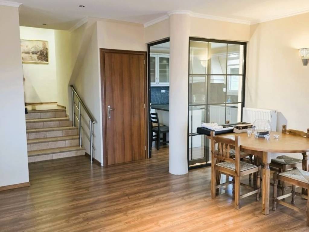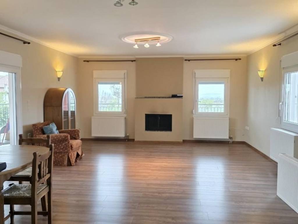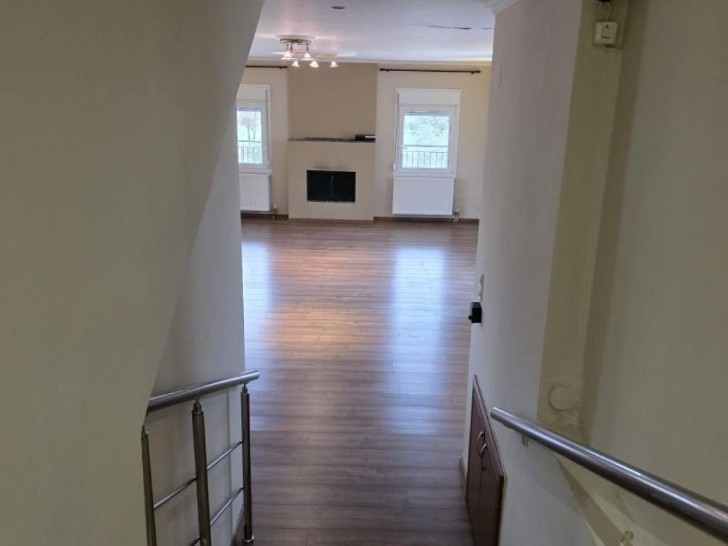First floor apartment for rent, 122 sq.m. with 43 sq.m. attic, in a two-story house built in 2000, on the outskirts of the city of Drama. It consists of an open-plan space that includes a living room with dining area, a large kitchen, three bedrooms, a large bathroom, and a small storage room. The apartment has a spacious attic that is accessed via an internal staircase. The floors are covered with ceramic tiles and laminate. The exterior frames are PVC with double windows and screens. It has a solar water heater, air conditioning, and heating is provided by a heat pump system. The apartment is an independent horizontal property and is accessed via an external staircase. It has comfortable terraces, is bright and is located in an area that combines the tranquility of the countryside with quick access to the city center and is in high demand. It was completely renovated in 2025 and is in very good condition. The exterior insulation of the apartment is expected to be completed in the spring of 2026. A big advantage is that there is a photovoltaic system with a battery installed, which adds increased autonomy to electricity consumption. To view the property, it is mandatory to show your police ID.