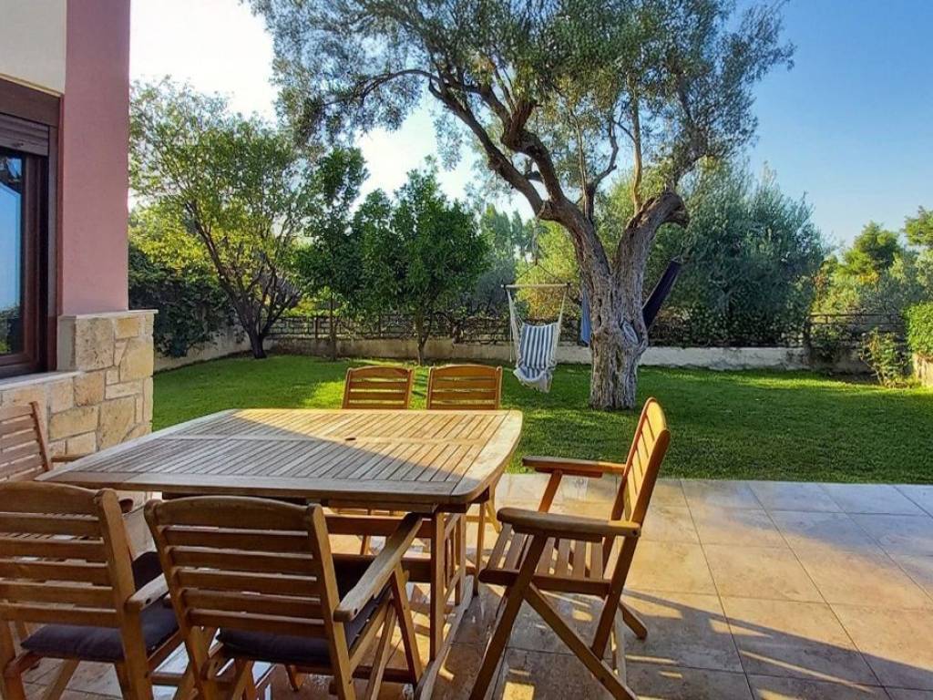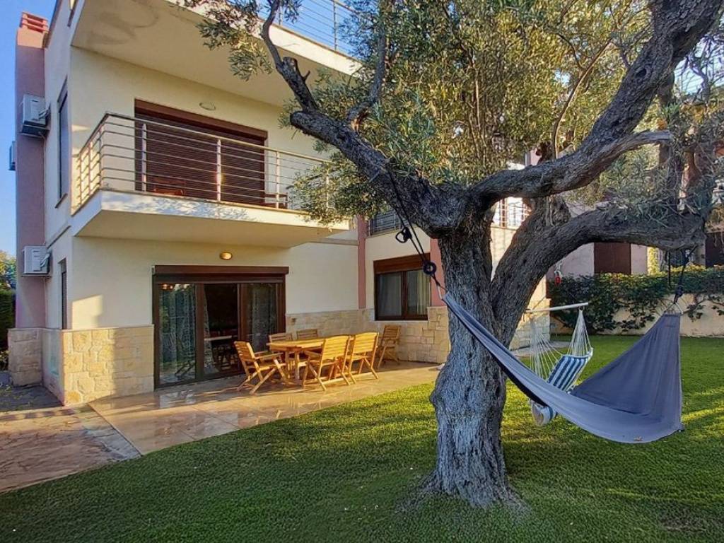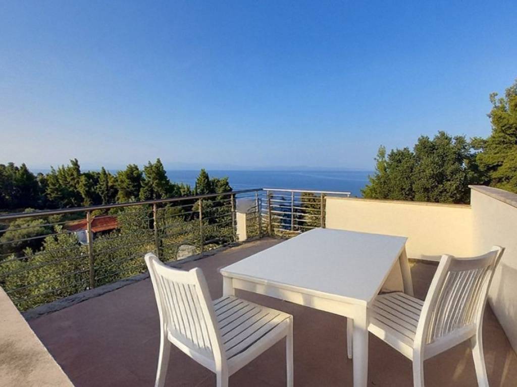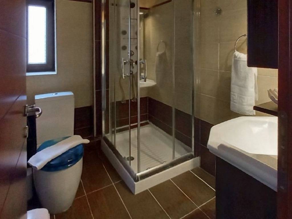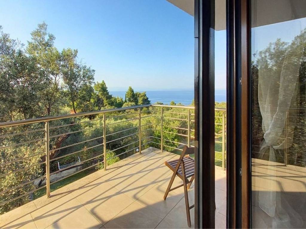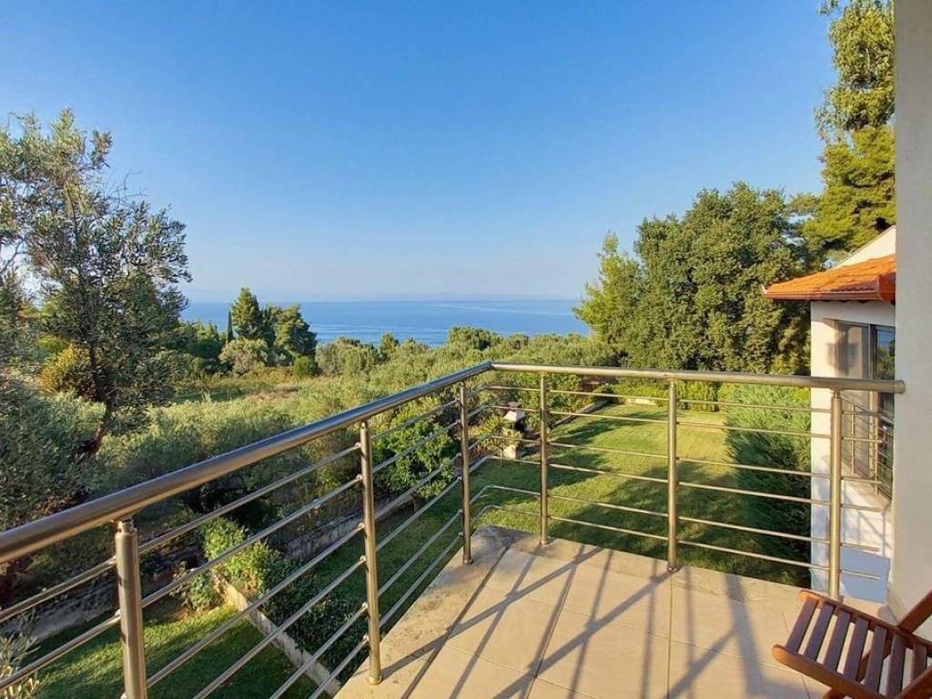 In the beautiful area of Kryopigi, Halkidiki, an impressive 134 sq.m. detached house is available for sale, featuring a private garden and stunning sea views. The residence is arranged over two levels: the ground floor includes a spacious open-plan living room with kitchen and a guest WC, while the first floor offers three bedrooms and a full bathroom. Built in 2006, the house comes fully furnished and equipped with all necessary electrical appliances. It features synthetic window frames with double glazing, air conditioning for year-round comfort, a fireplace for warmth and ambiance, as well as a parking space and a storage room for additional convenience. Security is enhanced with a reinforced door and an alarm system. In addition, the 25 sq.m. roof garden provides an ideal space for relaxation with a view. The property is located just 200 meters from the sea, making it an excellent choice for families seeking comfort, functionality, and close proximity to the beach. Price: €370,000