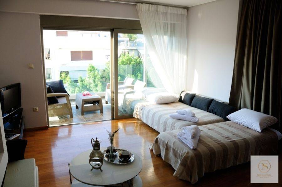 Glyfada, Golf, Maisonette For Rent, 100 sq.m., In Plot 600 sq.m., Property Status: Amazing, Floor: 3rd, 2 Level(s), 1 Bedrooms 2 Bathroom(s), Heating: Autonomous - Petrol, Building Year: 2009, Energy Certificate: C, 1 parking(s), Floor type: Wooden floors, Type of door frames: Aluminum, Features: Security door, Fireplace, Internal Staircase, Double Glazed Windows, Window Screens, Balconies, Furnished, Airy, Roadside, Bright, AirConditioning, Swimming pool, Back yard (Garden), Price: 2.600€. NEW SOLUTION REAL ESTATE, Tel: (+30) 210 9680099-(6944848414), email: info@newsolution.gr