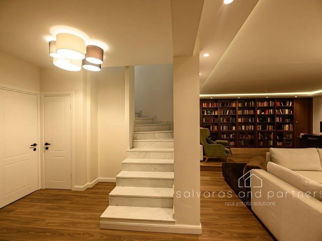 Κωδικός 3917 Μεζονέτα, 3 επιπέδων, διατίθεται προς πώληση πλήρως επιπλωμένη, στο Πανόραμα στον οικισμό του Νόμου 751. Αισθητική πρόκληση , για μία προνομιακή κατοικία η οποία παραδίδει μαθήματα αρχιτεκτονικής. Καλύπτει συνολικά 405 τ.μ., είναι κατασκευής του 1988 , ανακαινίσθηκε πλήρως το 2022 , και φιλοξενεί 6 δωμάτια. Αναλυτικότερα στο 1ο επίπεδο δεσπόζει το εντυπωσιακά μεγάλο, πολυτελές και λειτουργικό καθιστικό με το επιβλητικό τζάκι. Τα μαρμάρινα δάπεδα που επενδύουν το δάπεδο αλλά και το τζάκι χαρίζουν μία αίσθηση πολυτέλειας στο χώρο. Η κουζίνα ανεξάρτητη, μοντέρνα , μίνιμαλ αισθητικής με πολλούς αποθηκευτικούς χώρους και ηλεκτρικές συσκευές τελευταίας τεχνολογίας δεν αφήνει περιθώρια για συμβιβασμούς. Ανεβαίνοντας η ζώνη νυχτός εξίσου εντυπωσιακή και άνετη διαθέτει 4 δωμάτια με 2 dressing rooms 2 ντουλάπες και 3 μπάνια. Αξίζει να υπογραμμίσουμε ότι τα δύο δωμάτια είναι master room. Τα μπαλκόνια όλων των δωματίων προσφέρουν πανοραμική θέα . Το ημιυπόγειο έχει σχεδιαστεί με μοναδικό τρόπο. Διαθέτει έναν μοναδικό χώρο που μπορεί να χρησιμοποιηθεί σαν 2ο σαλόνι η σαν γραφείο , με μεγάλες περιμετρικές βιβλιοθήκες. Στο ίδιο επίπεδο υπάρχουν ένα δωμάτιο, μπάνιο , laundry και μία αποθήκη. Ο κήπος αποκλειστικής χρήσης 200 τ.μ. στον οποίο έχουμε άμεση πρόσβαση από το καθιστικό είναι όμορφα διαμορφωμένος και είναι ιδανικός για χαλάρωση αλλά και για συγκεντρώσεις φίλων. Πρόκειται για μία κατοικία όπου μία σκέψη περνάει αμέσως από το μυαλό μας , ότι αυτό το σπίτι δεν είναι απλά ένα κέλυφος που μας προφυλάσσει , αλλά ταυτόχρονα συμμετέχει ισότιμα και επηρεάζει θεαματικά την καθημερινότητά μας. Η ποιότητα των υλικών, η γεωμετρική αισθητική σε συνδιασμό με την εξαιρετική επίπλωση δημιουργούν ένα αποτέλεσμα που δεν φλυαρεί και δεν υπερβάλει . Η κατοικία είναι εξοπλισμένη με λειτουργίες smart homeμε κλιματιστικά daikin , με συναγερμό, σήτες και διαθέτει 2 θέσεις στάθμευσης. Μετά την ανακαίνιση αναβαθμίστηκε και ενεργειακά στην κλάση Β. Ιδιαίτερα πλεονεκτικής είναι και η χωροταξική θέση της οικίας καθώς έχει άμεση πρόσβαση στον περιφερειακό στο εμπορικό κέντρο του Πανοράματος , σε σχολεία , ιδιωτικά εκπαιδευτήρια , πάρκα και συγκοινωνία. Ένα παράδειγμα προς μίμηση , Τιμή 870.000€ ΤΟΠΟΘΕΣΙΑ Το Πανόραμα βρίσκεται ΒΑ του πολεοδομικού συστήματος της Θεσσαλονίκης και σε υψόμετρο 250 μέτρων. Απλώνεται σε έκταση 33.000 στρεμμάτων , μέσα σε δάσος με πανοραμική θέα τον θερμαικό κόλπο και τον Ολυμπο. ΓΕΙΤΟΝΙΕΣ Στο Πανόραμα υπάρχουν οι εξής γειτονιές – οικισμοί, το Παλαιό Πανόραμα, Νόμος 751, Μακεδονία ή Εφέδρων Αξιωματικών, Τοπογράφοι ΑΠΟΣΤΑΣΕΙΣ ΠΡΟΣΒΑΣΙΜΟΤΗΤΑ Το Πανόραμα απέχει 14 χλμ. περίπου από το κέντρο της πόλης και εξυπηρετείται από τη λεωφορειακή γραμμή 58 του Ο.Α.Σ.Θ. και από τη λεωφορειακή γραμμή 60 για τις τοπικές οδούς . ΚΛΙΜΑ Το πλούσιο φυσικό ανάγλυφο της περιοχής δημιουργεί άριστες κλιματολογικές συνθήκες . Οι επικρατούντες άνεμοι είναι κυρίως Β-ΒΔ , δημιουργώντας ένα ιδιαίτερο μικροκλίμα , το οποίο χαρακτηρίζεται από δριμείς χειμώνες και δροσερά καλοκαίρια και σχεδόν μηδενική υγρασία καθ όλη τη διάρκεια του έτους. ΑΓΟΡΑ Η αγορά του Πανοράματος είναι μικρή , με λίγα εμπορικά καταστήματα , το σύνολο των οποίων αναπτύσσεται στην οδό Κομνηνών. Την τιμητική τους βέβαια έχουν τα ζαχαροπλαστεία με τα δημοφιλή τρίγωνα του Πανοράματος. ΚΟΙΝΟΦΕΛΗ ΕΓΚΑΤΑΣΤΑΣΕΙΣ Στο Πανόραμα λειτουργούν