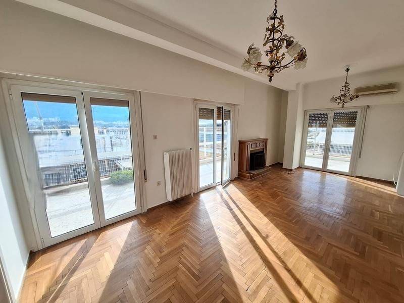 Ilisia - Apartment 88sqm bedrooms 2, levels 1, 5th (88sqm, 2 bedrooms, living room, dinning room, kitchen, bathroom), penthouse, partly renovated, year built 1976, energy class E, living room, hall, kitchen, bathroom, heating type: central (oil), quiet, unobstructed view, frontage, fireplace, balconies, large balconies, elevator, aluminum frames, double glazed windows, wood & marble floors, separate kitchen, secure door, residential zone, eastern orientation, investment property, close to bus stop (up to 200m), close to school (up to 500m), close to market (up to 500m).