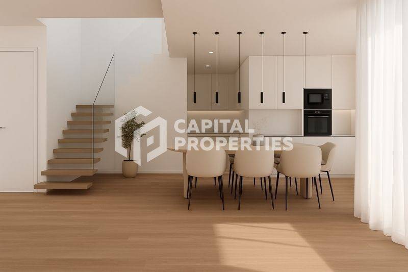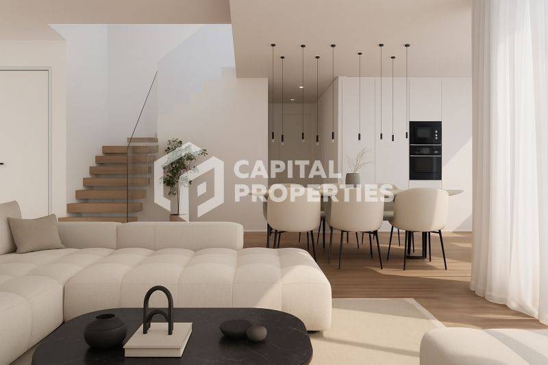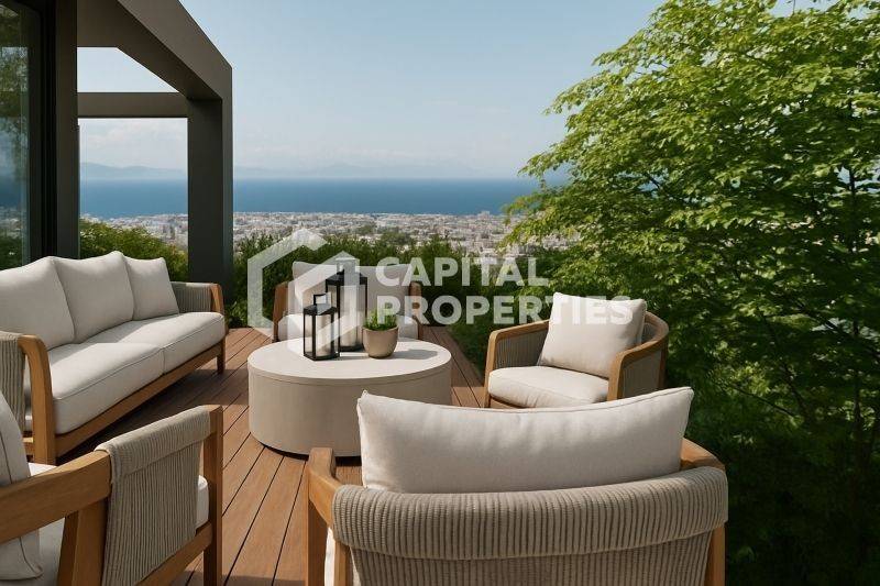 This 135 sq.m. maisonette, positioned on the 4th and 5th floors of an elegant five-storey building, offers a refined expression of modern Mediterranean living. The main level welcomes you into a luminous open-plan living and dining environment paired with a contemporary kitchen. Wide openings lead to an impressive 35 sq.m. balcony, creating a generous outdoor extension perfectly suited for relaxation and entertaining. This floor also features a guest WC, a dedicated laundry room and two beautifully designed bedrooms sharing a sophisticated bathroom. The upper level is envisioned as a serene private retreat, showcasing a refined study area and an elegant master suite with its own en-suite bathroom. This level also presents the rare potential to create a landscaped rooftop garden, offering a personal sanctuary with calming open views and an elevated sense of exclusivity. Additional features reinforce the property’s appeal: unobstructed views, an electric vehicle charger in the garage, two underground parking spaces, a private storage room, and construction aligned with modern energy-efficient standards, including double glazing and high-quality aluminium frames. Golden Visa eligibility further enhances its desirability. Thanks to its thoughtful layout, contemporary aesthetic language, strong neighbourhood growth and highly competitive pricing for its category, this residence delivers exceptional value for money—a sophisticated home that combines long-term appeal, practical advantages and panoramic beauty in one of the Riviera’s most promising districts.