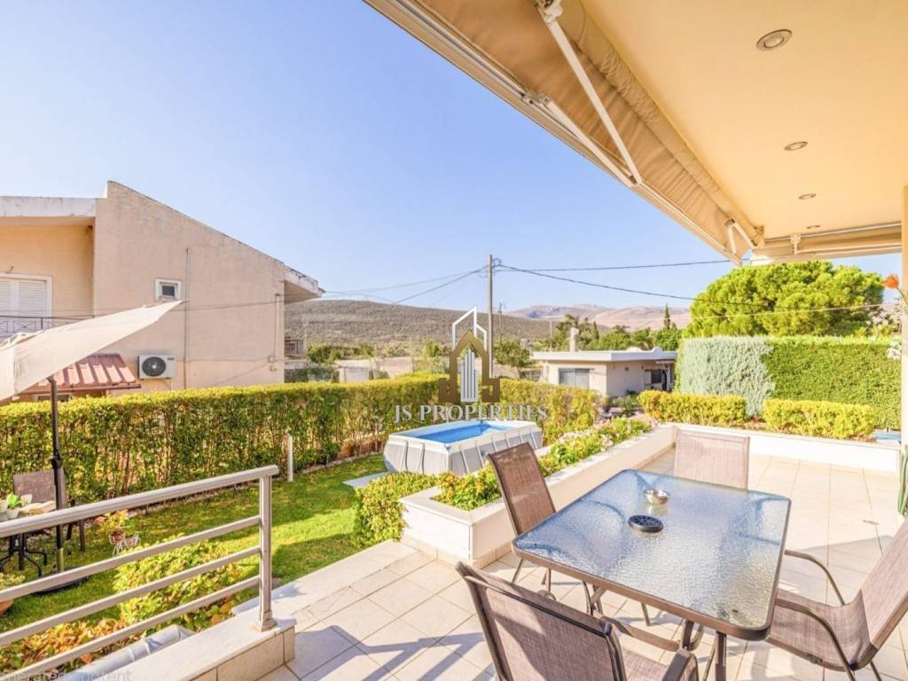Marathonas, Luxury Center Furnished Detached House on three levels with a total area of 184sqm on a huge plot of 187sqm with a large garden, swimming pool, several parking spaces and an unlimited sea view Consisting of: • Autonomous Semi-basement Apartment with living room, kitchen, bedroom and bathroom, smartly designed to offer maximum functionality and comfort • Ground floor containing an open-plan living room, dining room and kitchen • First Floor which includes two bedrooms with large wardrobes, a spacious bathroom and large balconies offering views of the greenery and the blue sky. Built in 2006, aluminum frames, side windows, autonomous underfloor heating (oil), air conditioning, solar water heater, night power, storage room, quiet area and 9 minutes by car from the sea Price 430,000€ Property code: 976 For any information, contact us